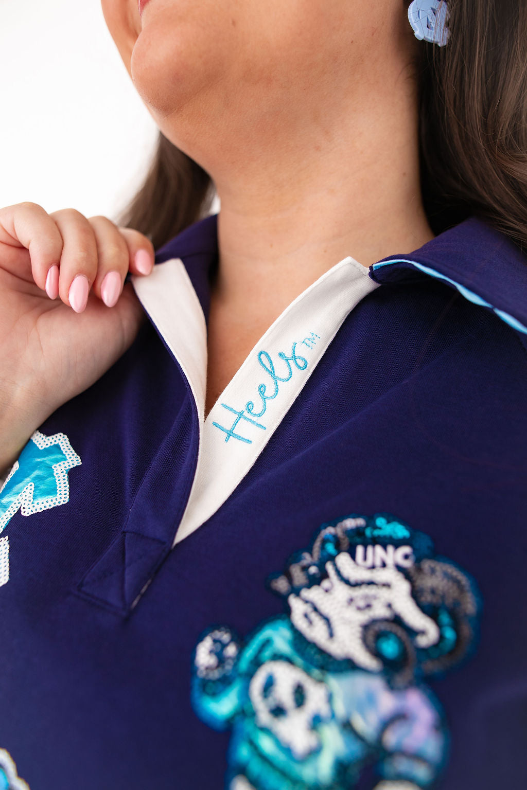 • Features sequined, fabric appliqué, and embroidered university trademarks