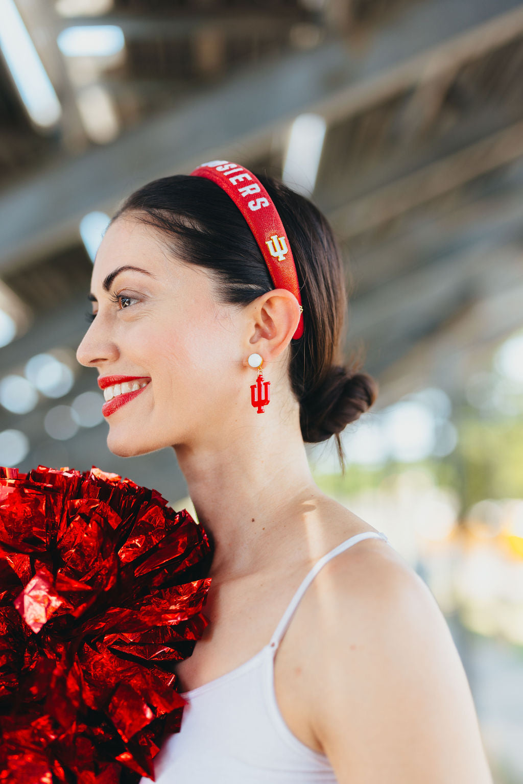 - Indiana University Mini Crimson Logo Earrings with White Agate Top
