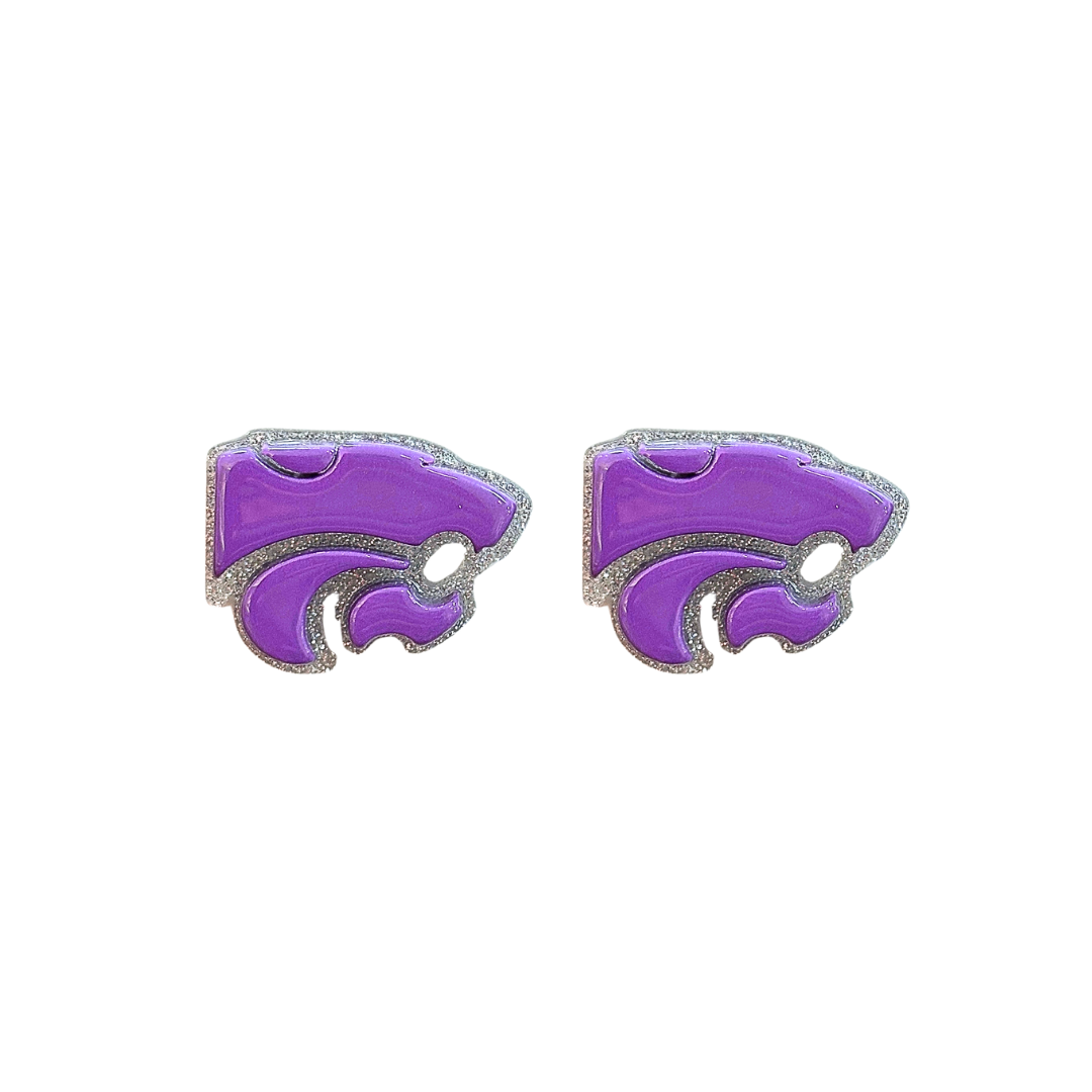 • Purple and Silver Glitter Wildcat logo stud earrings with post
