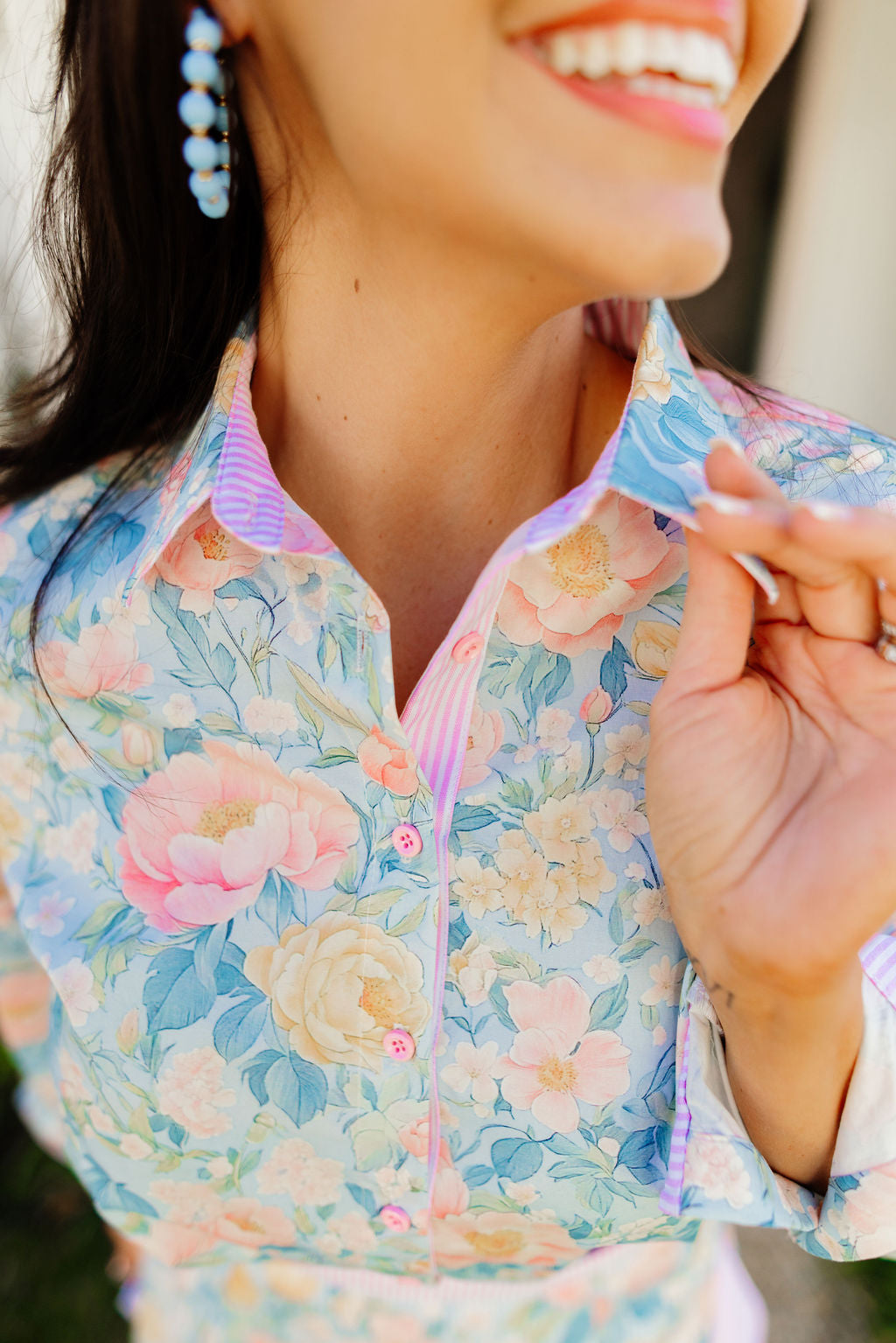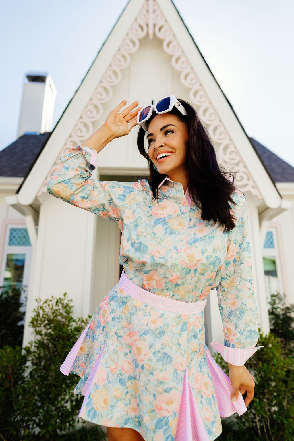 Floral Stripe Fleece-Lined Sweatpants in Mint
