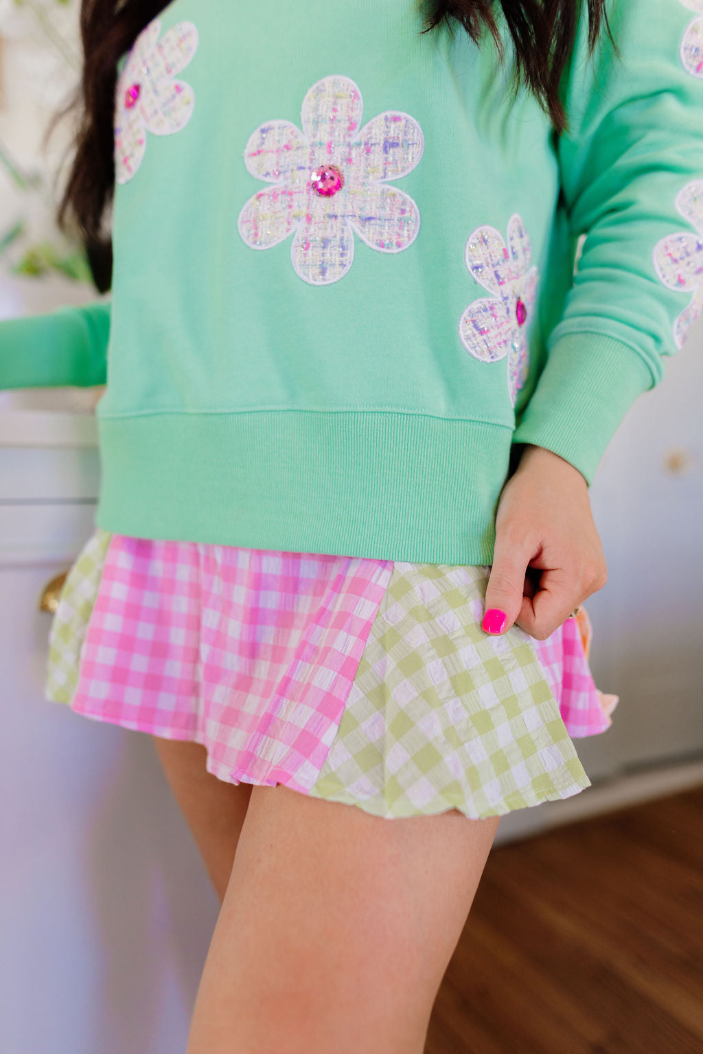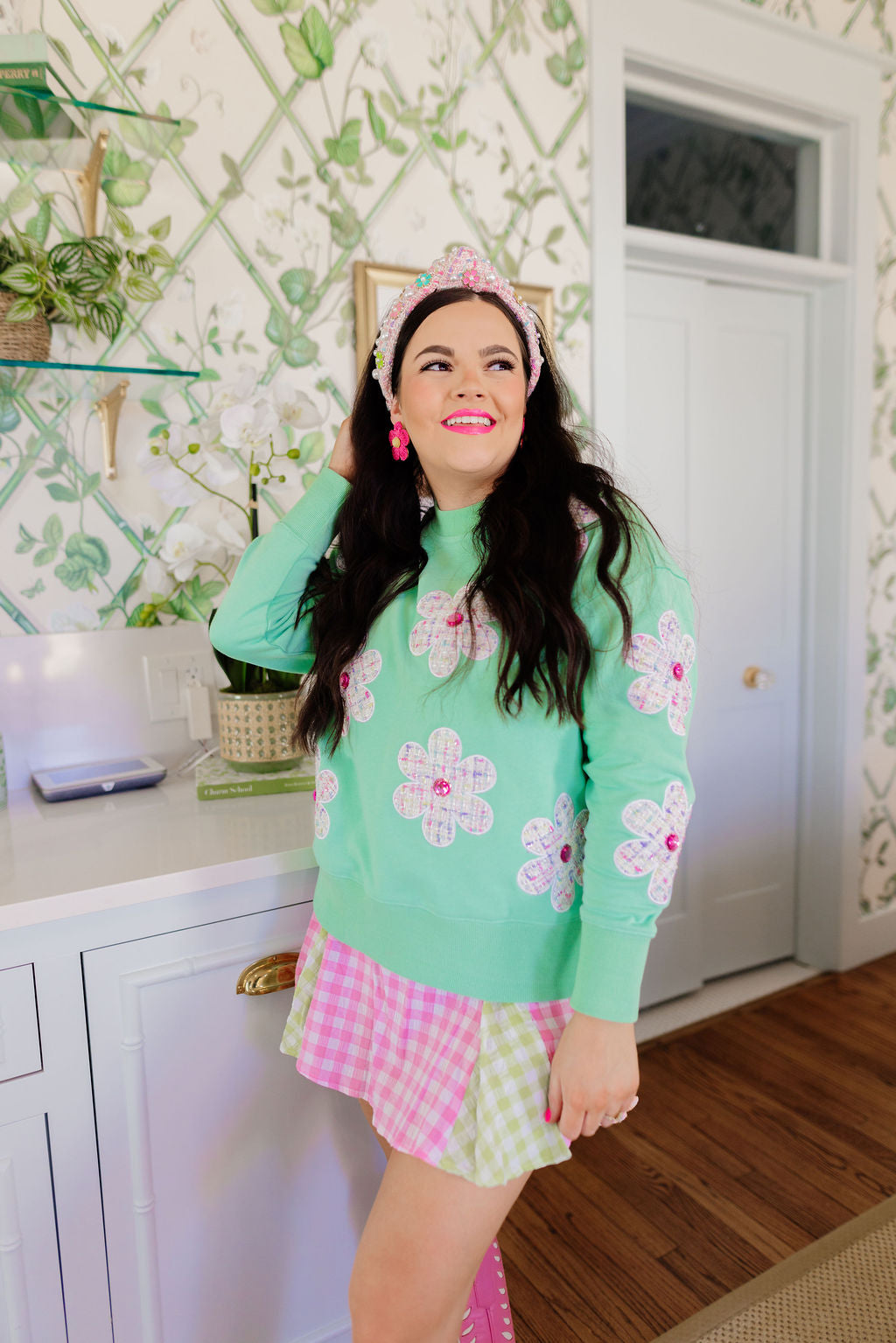 Floral Stripe Fleece-Lined Sweatpants in Mint