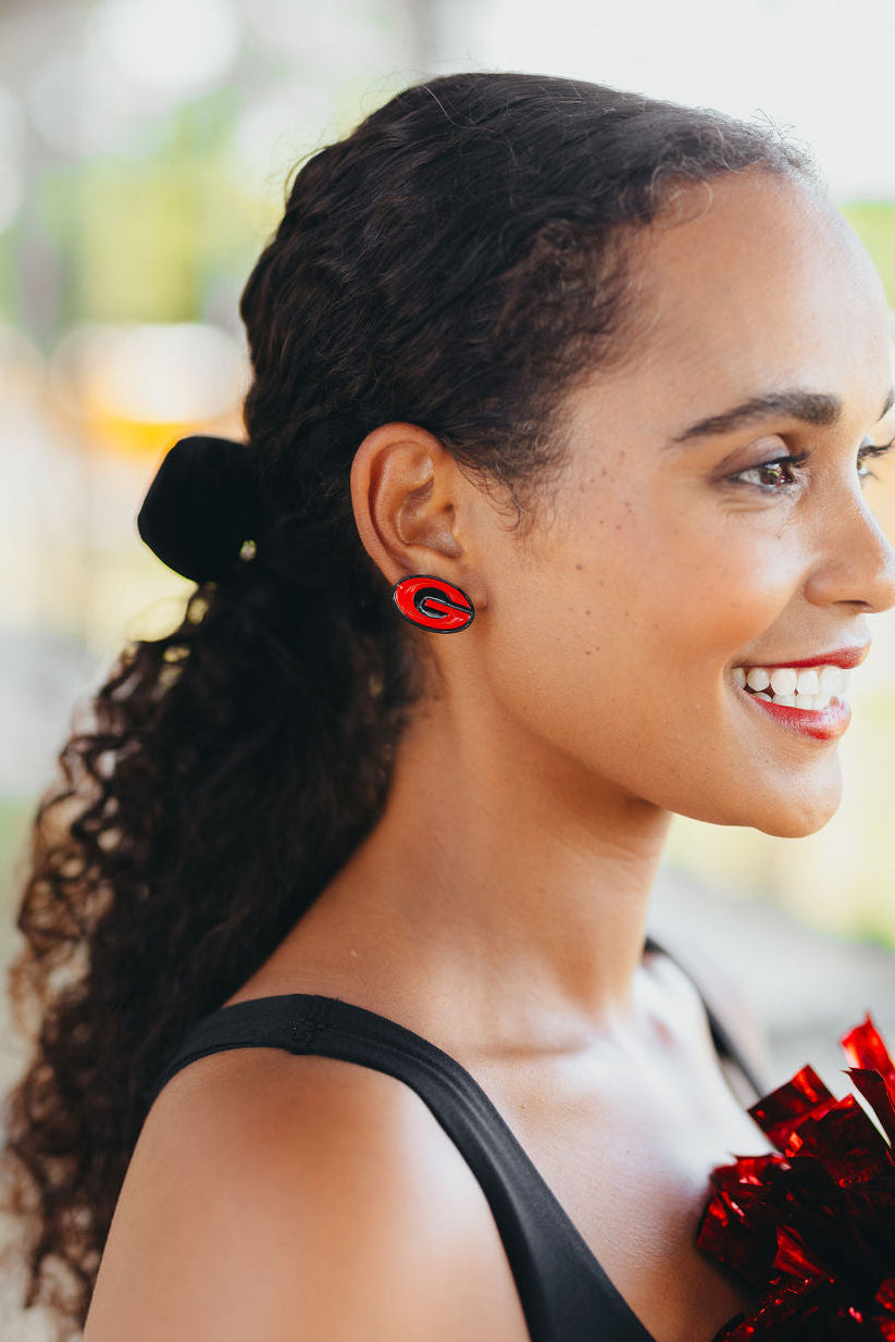 - Red and Black Power G Georgia stud earrings with post