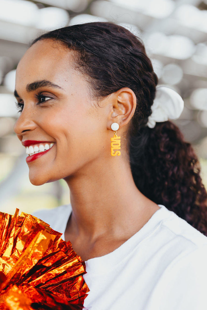 - Orange acrylic mini VOLS earrings with White Agate gemstone top