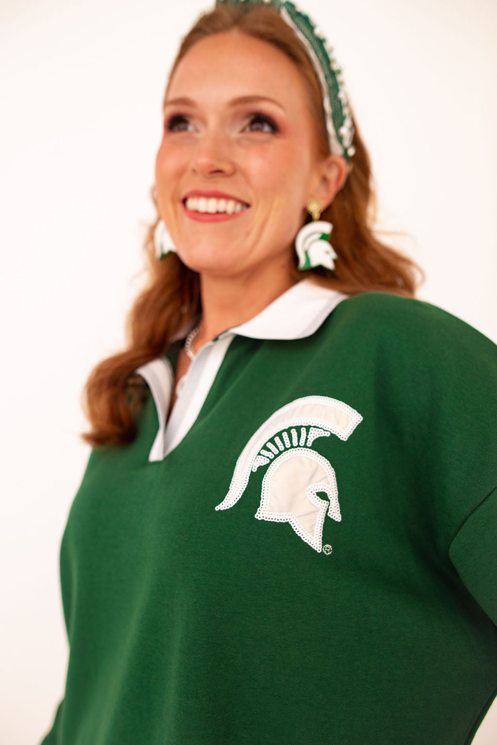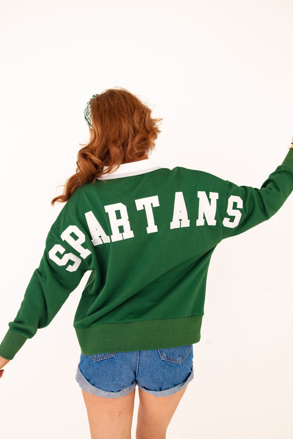 • Cotton sweatshirt featuring preppy collar with accent trim