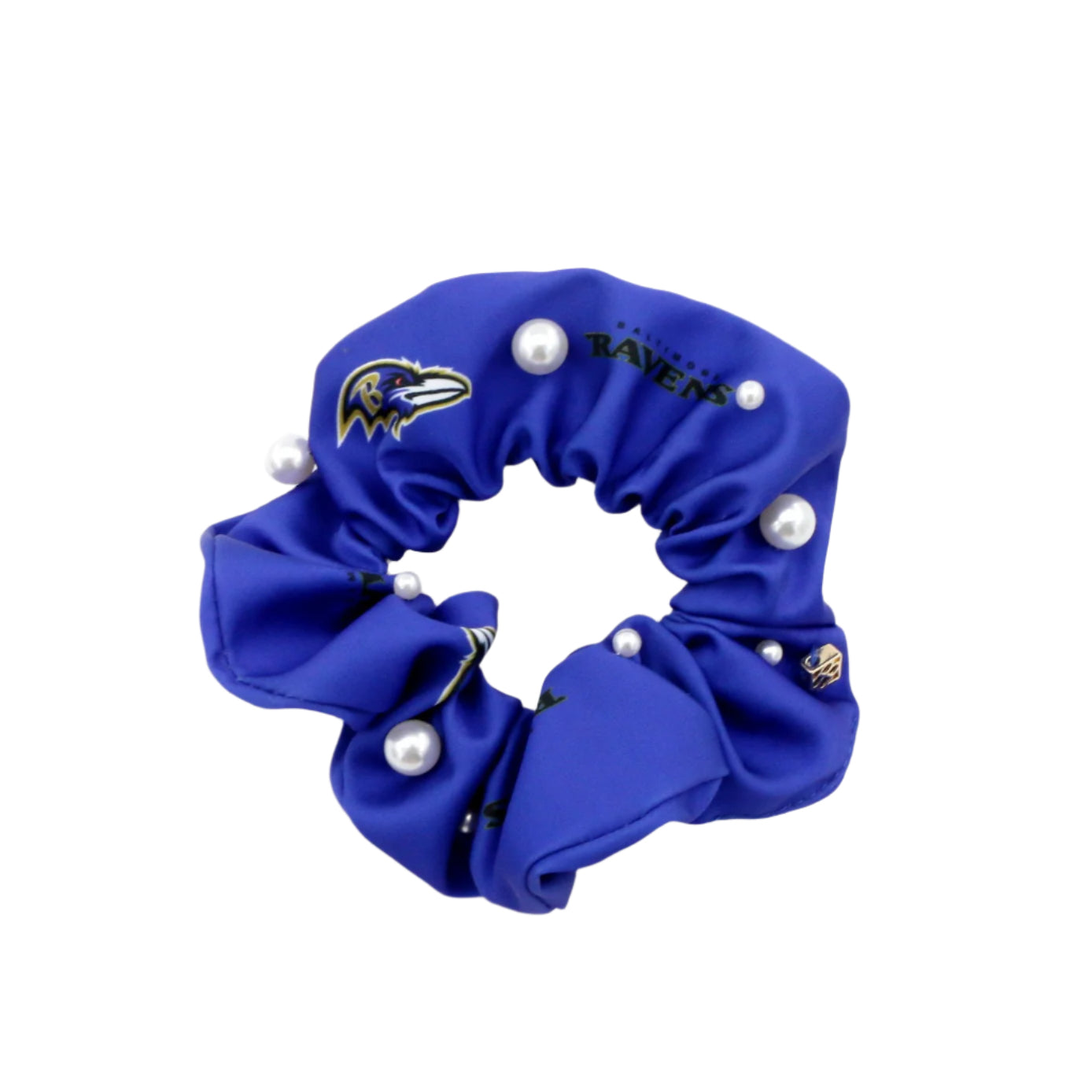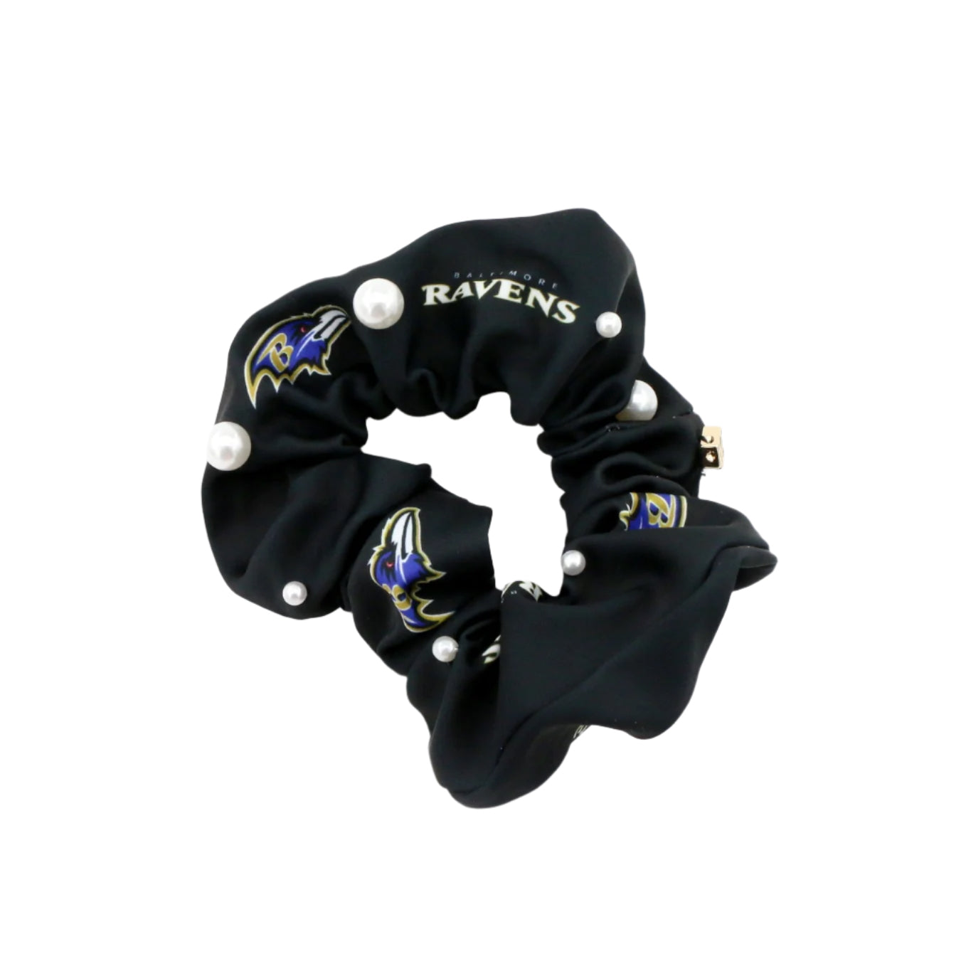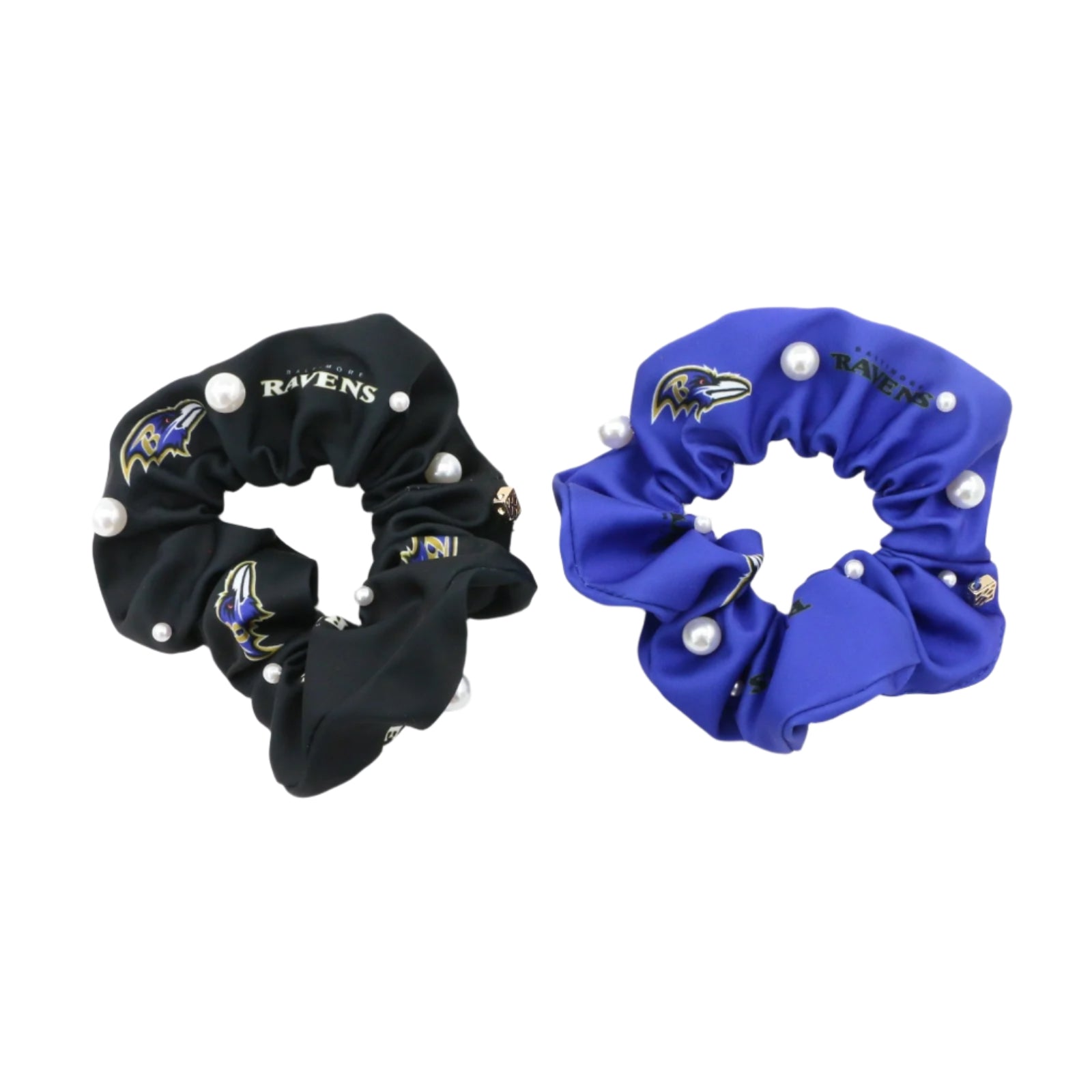 - Black and Purple Baltimore Ravens Logo Dual Scrunchie with Pearls