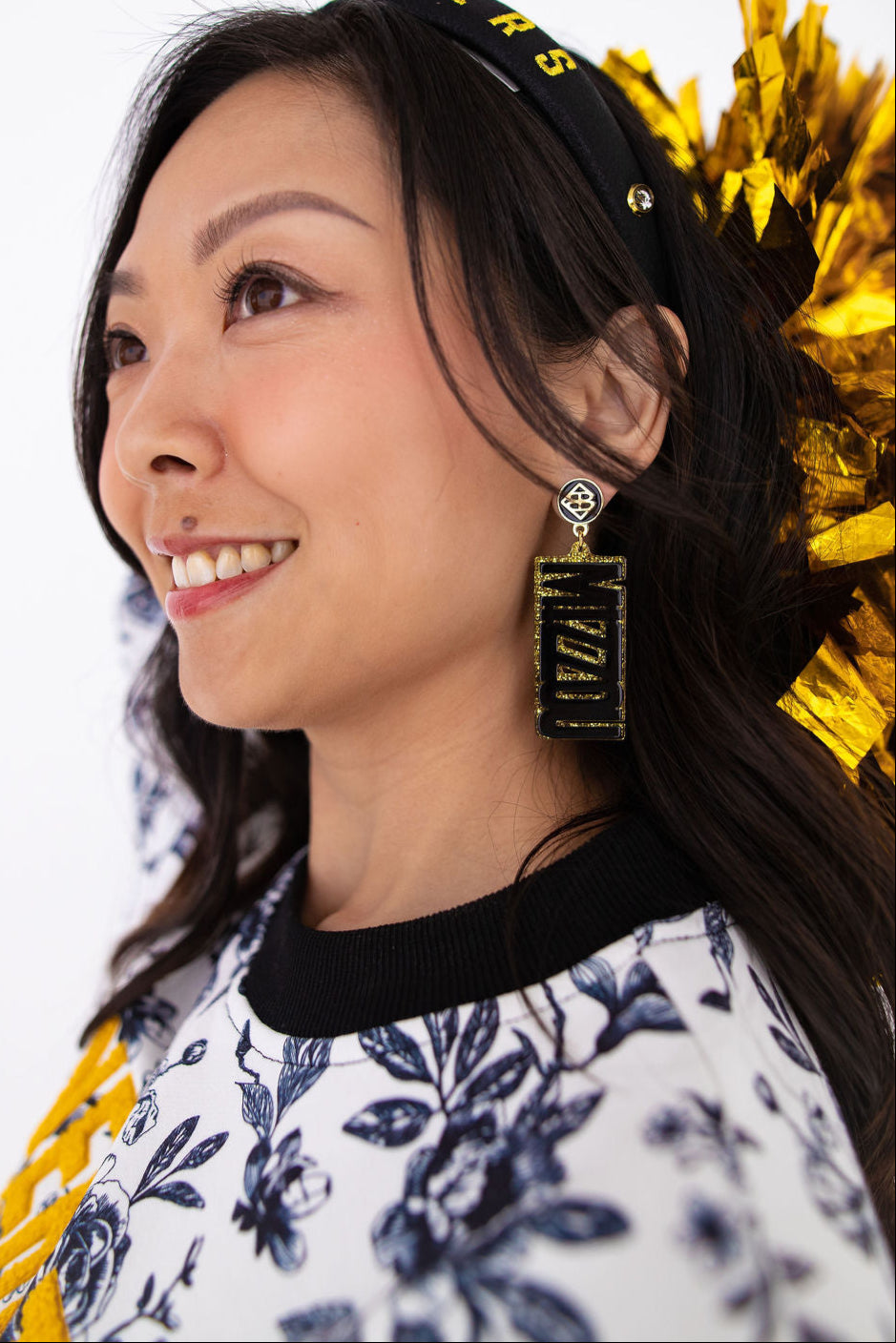 • Missouri Black over Gold MIZZOU Earrings with logo top