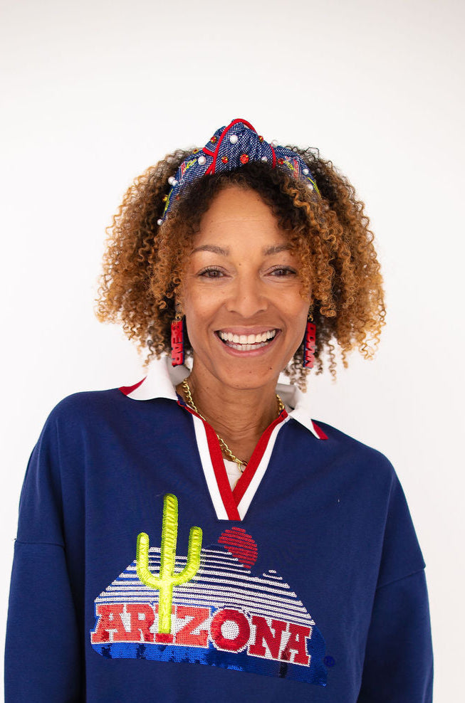 Arizona Vintage Cactus Logo Cross Stitch Navy Headband