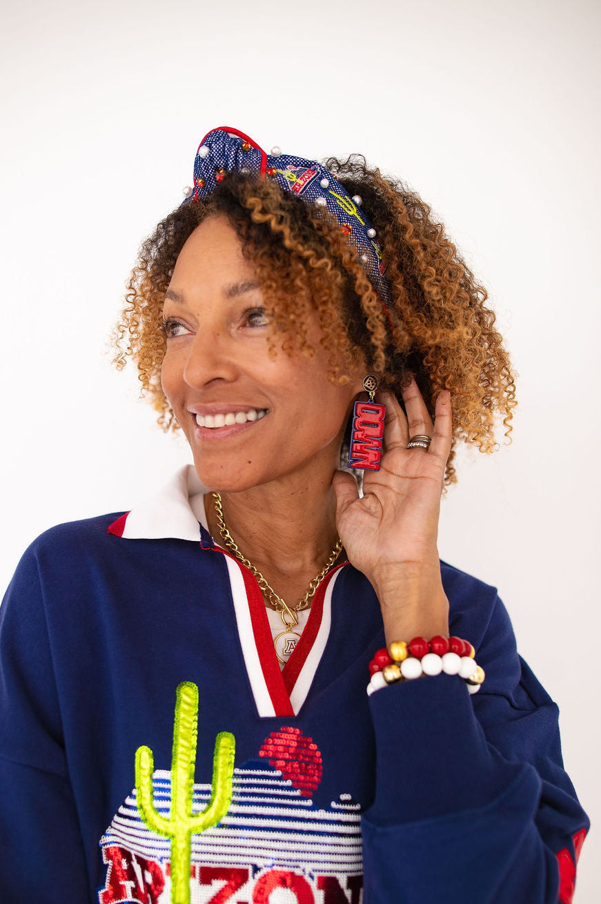 • Arizona Vintage Cactus Logo Cross Stitch Headband with Hand-Sewn Crystals and Pearls