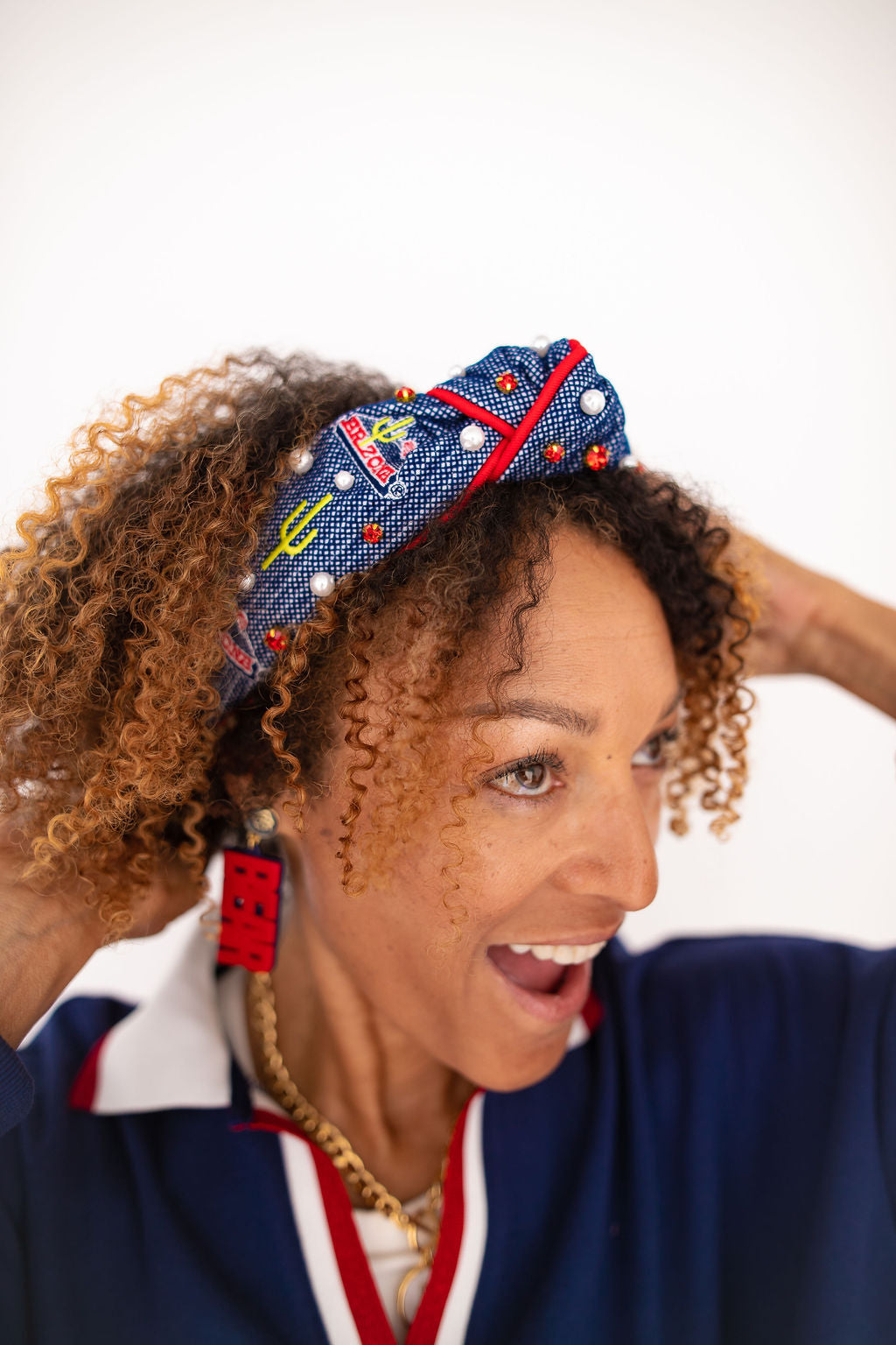 Arizona Red Thin Embroidered Ribbon Bow Headband