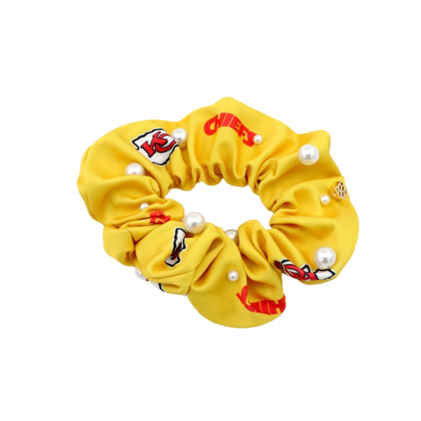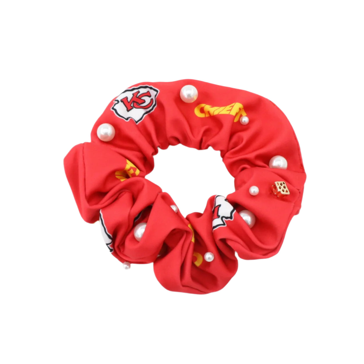 • Red and Yellow Kansas City Chiefs Logo Dual Scrunchie with Pearls