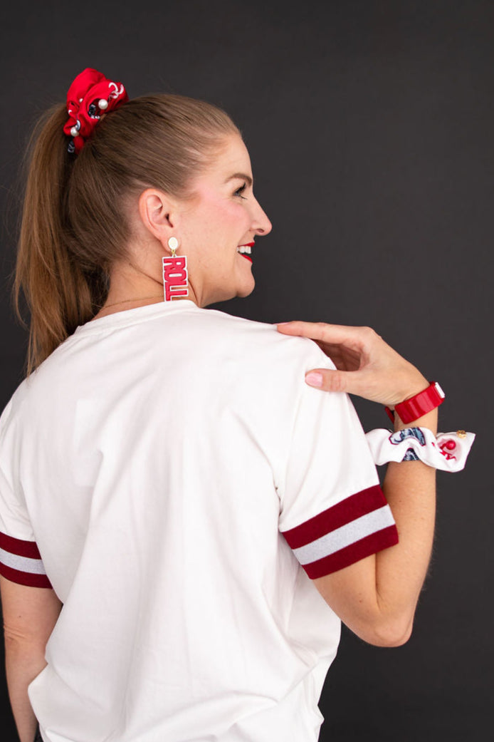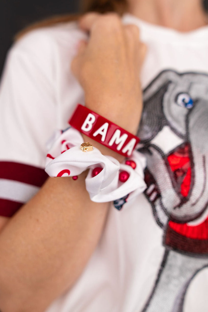 Alabama White and Crimson Dual Scrunchies
