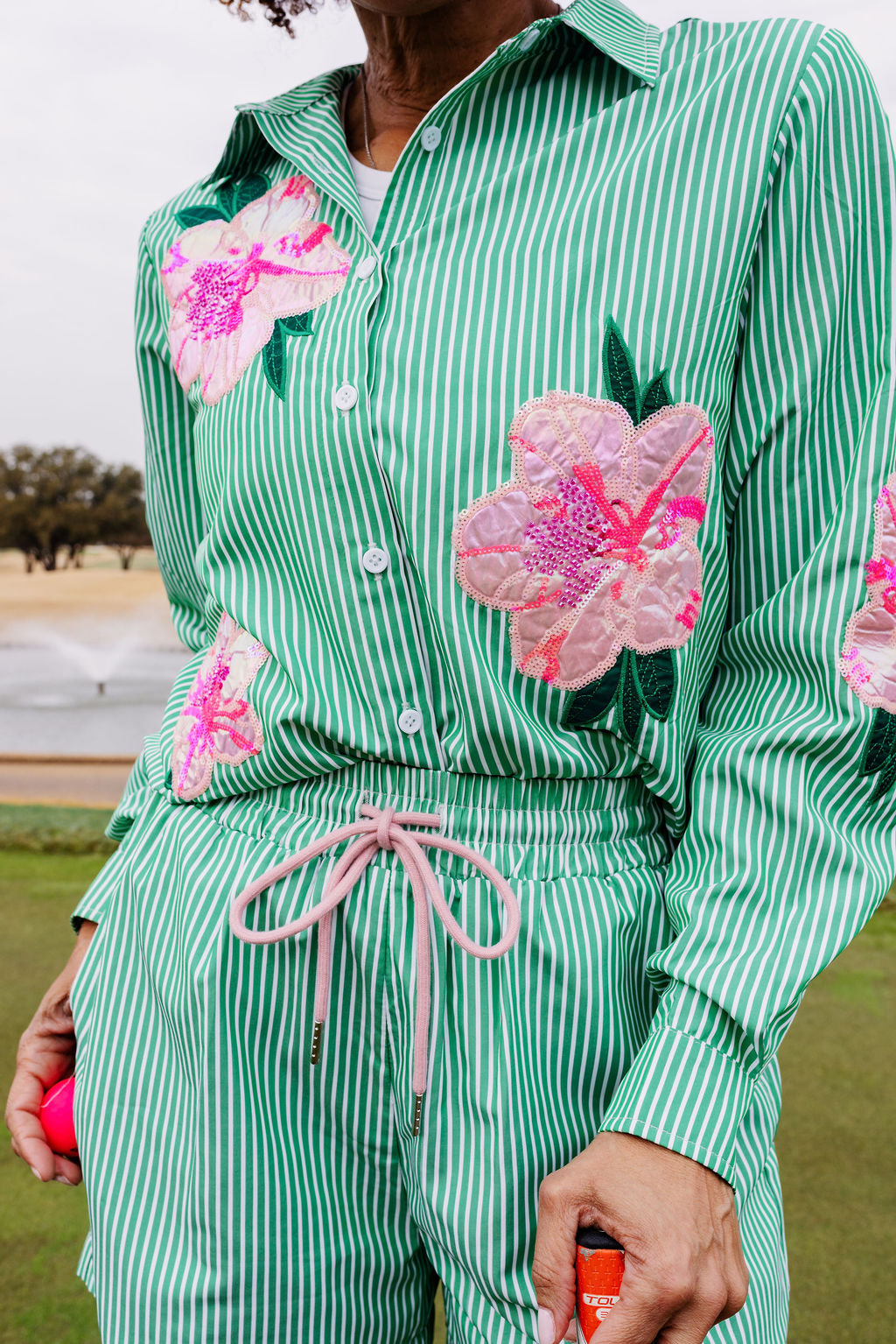 Floral Stripe Fleece-Lined Sweatpants in Mint