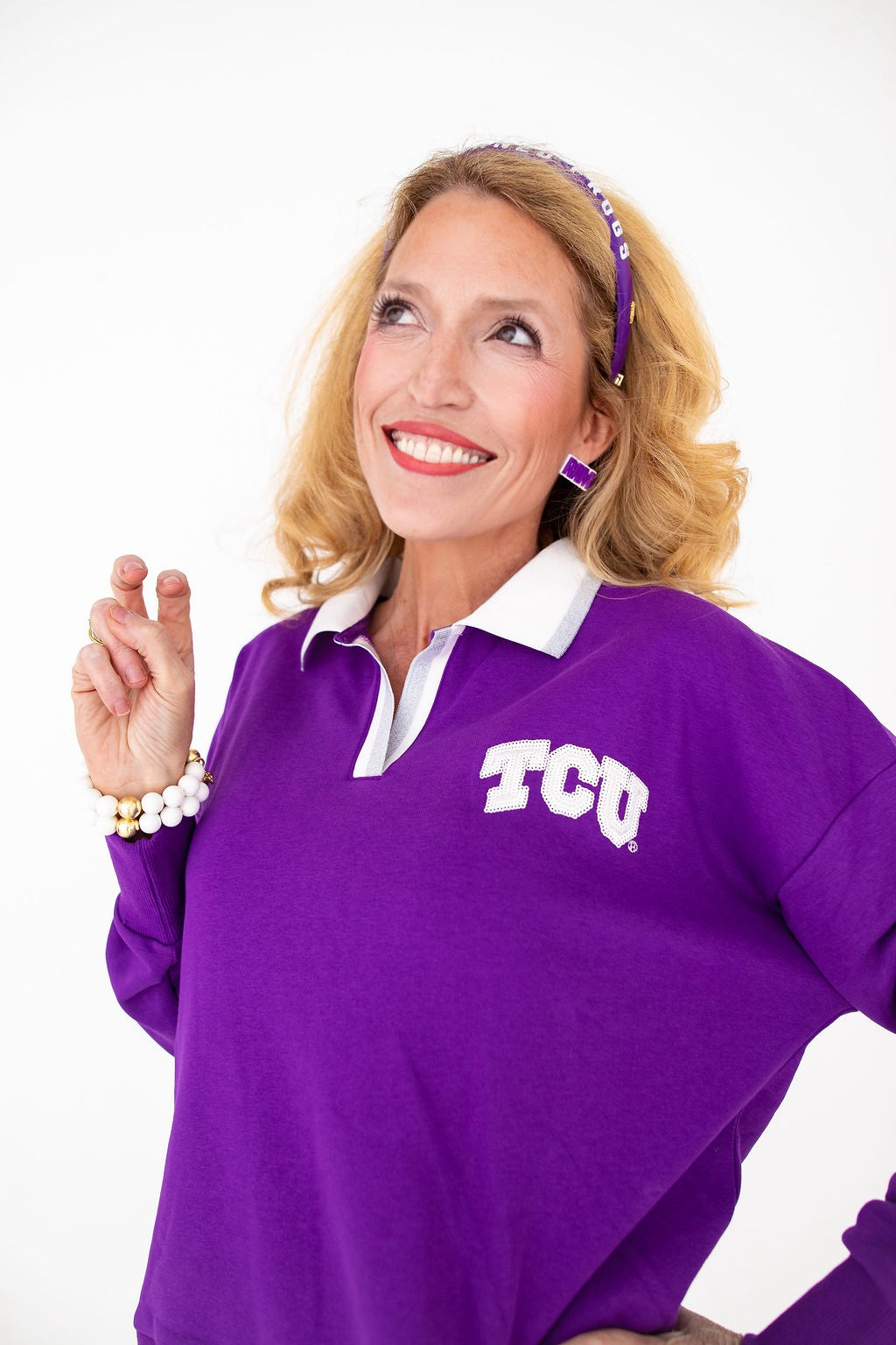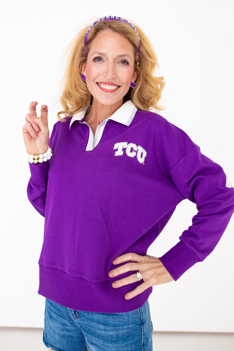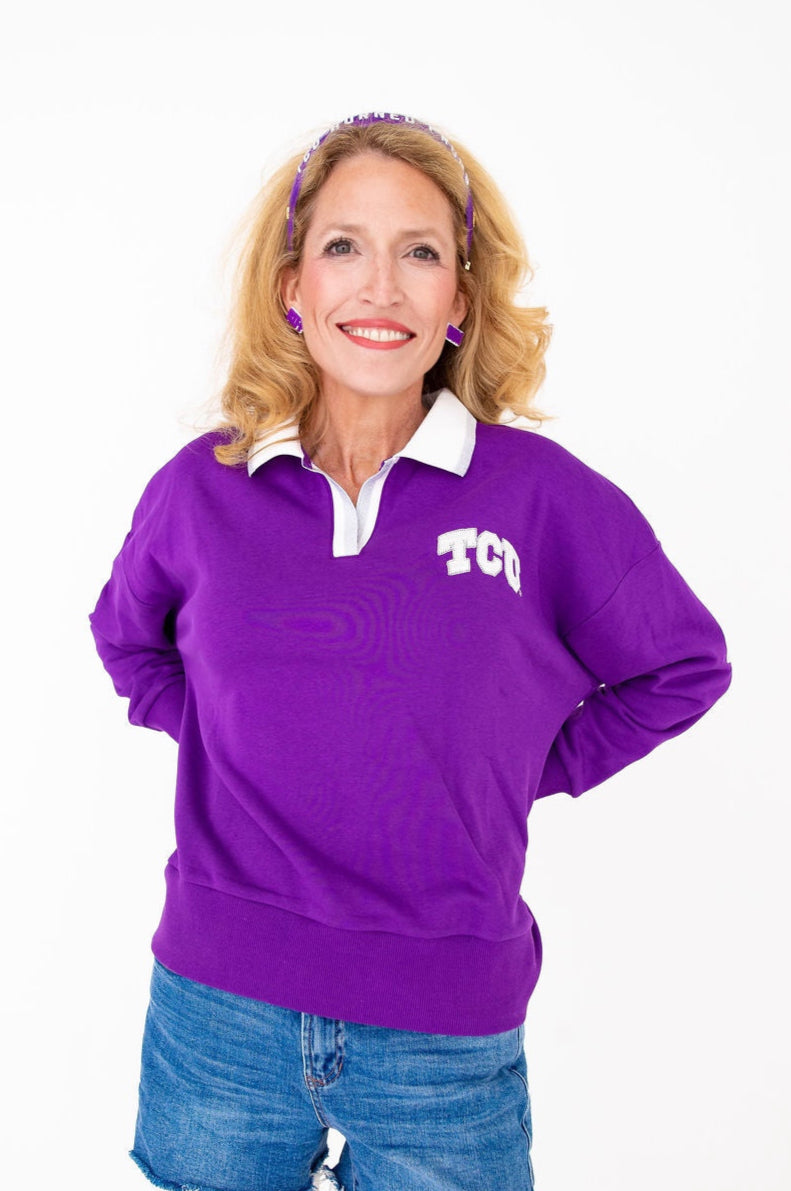 • Cotton sweatshirt featuring preppy collar with accent trim