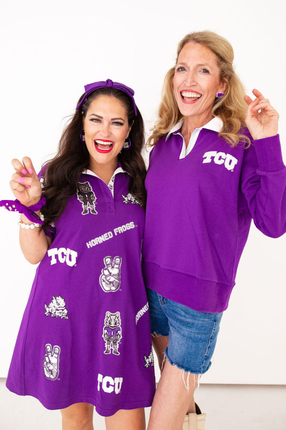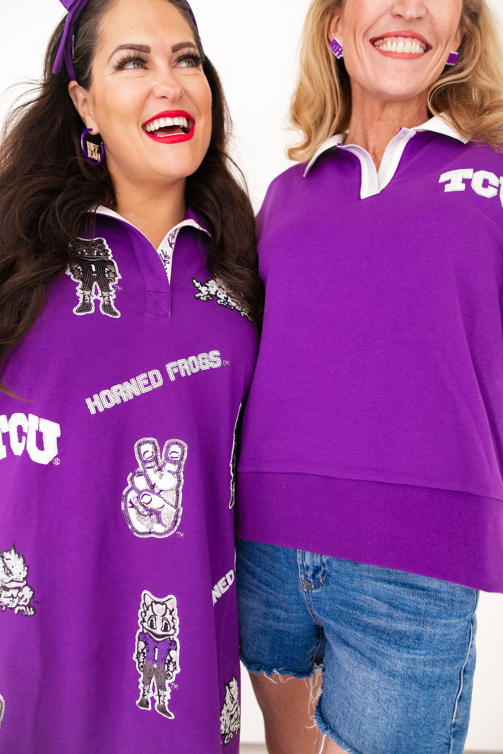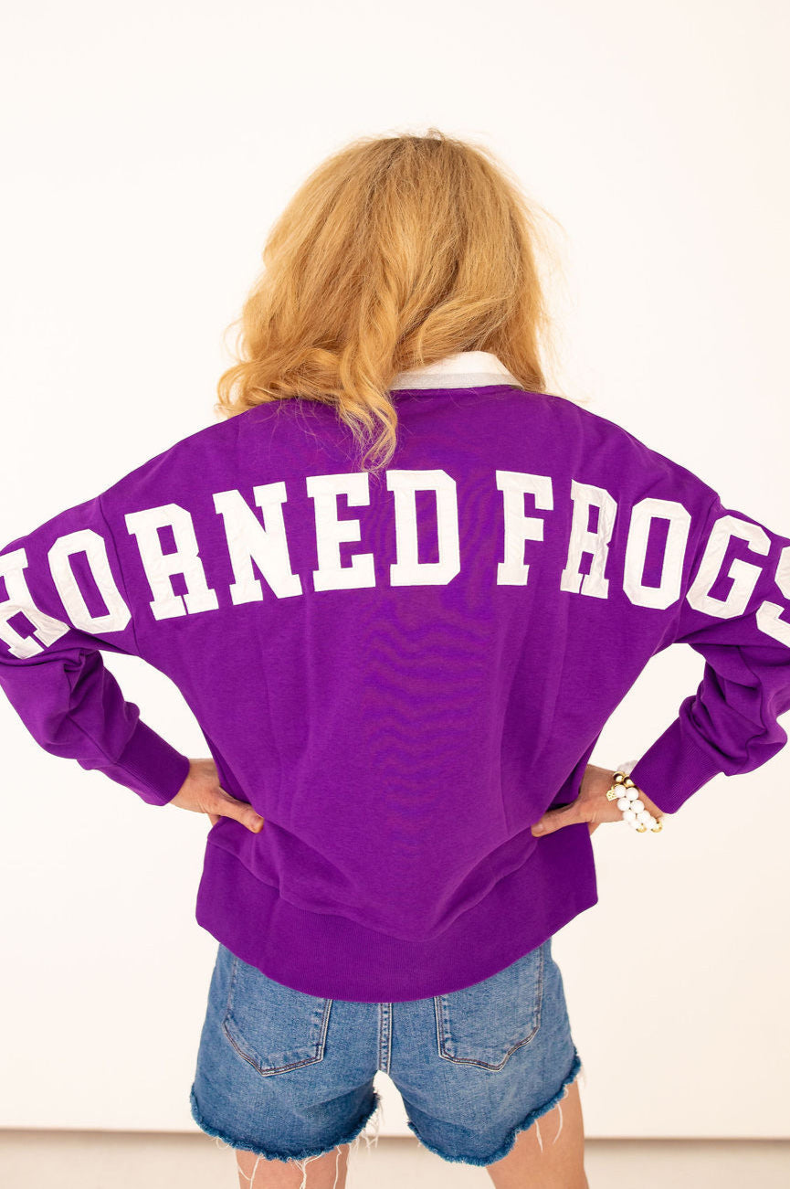• Cotton sweatshirt featuring preppy collar with accent trim
