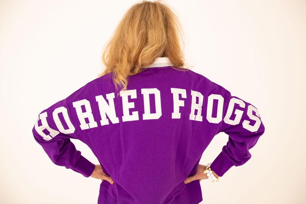 • Team lettering across the back of the sweatshirt in fabric appliqué with embroidery