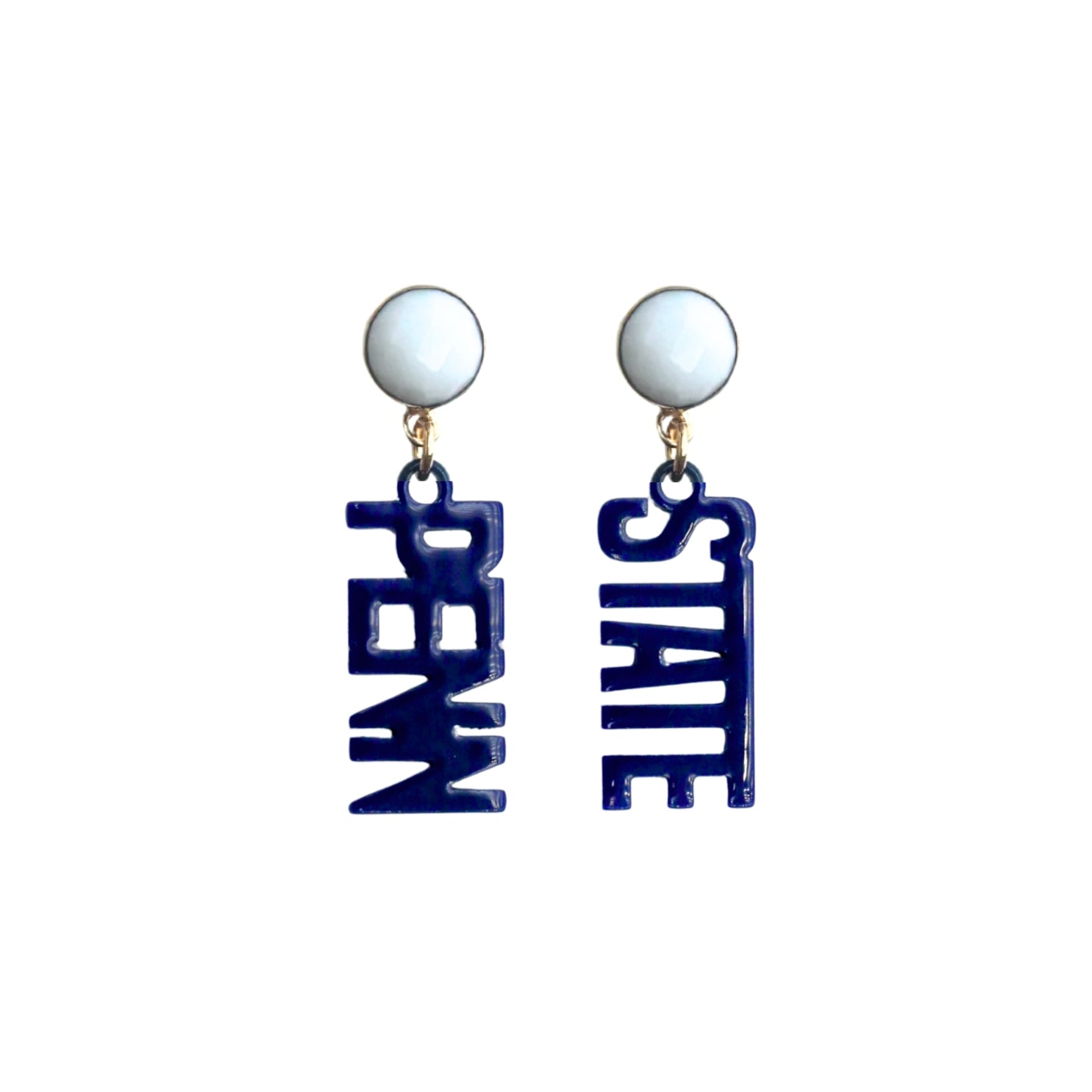 • Navy mini PENN STATE earrings with hand-faceted white agate top