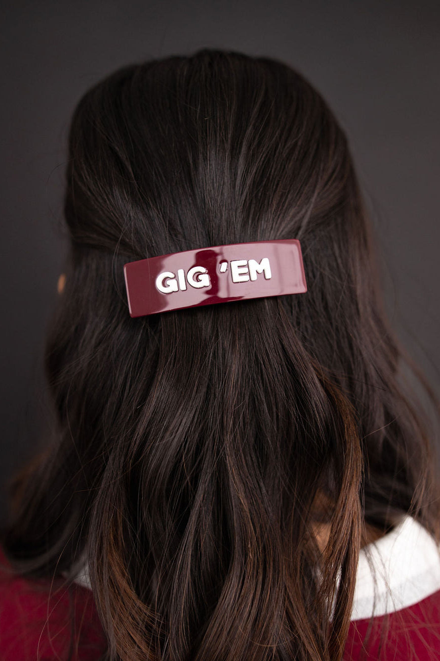 - Texas A&M Maroon GIG 'EM Rectangle Barrette Clip