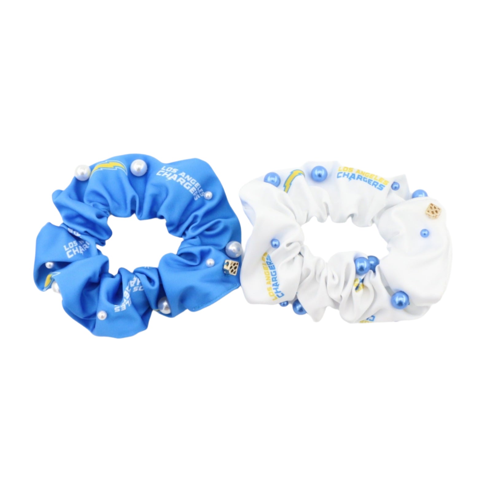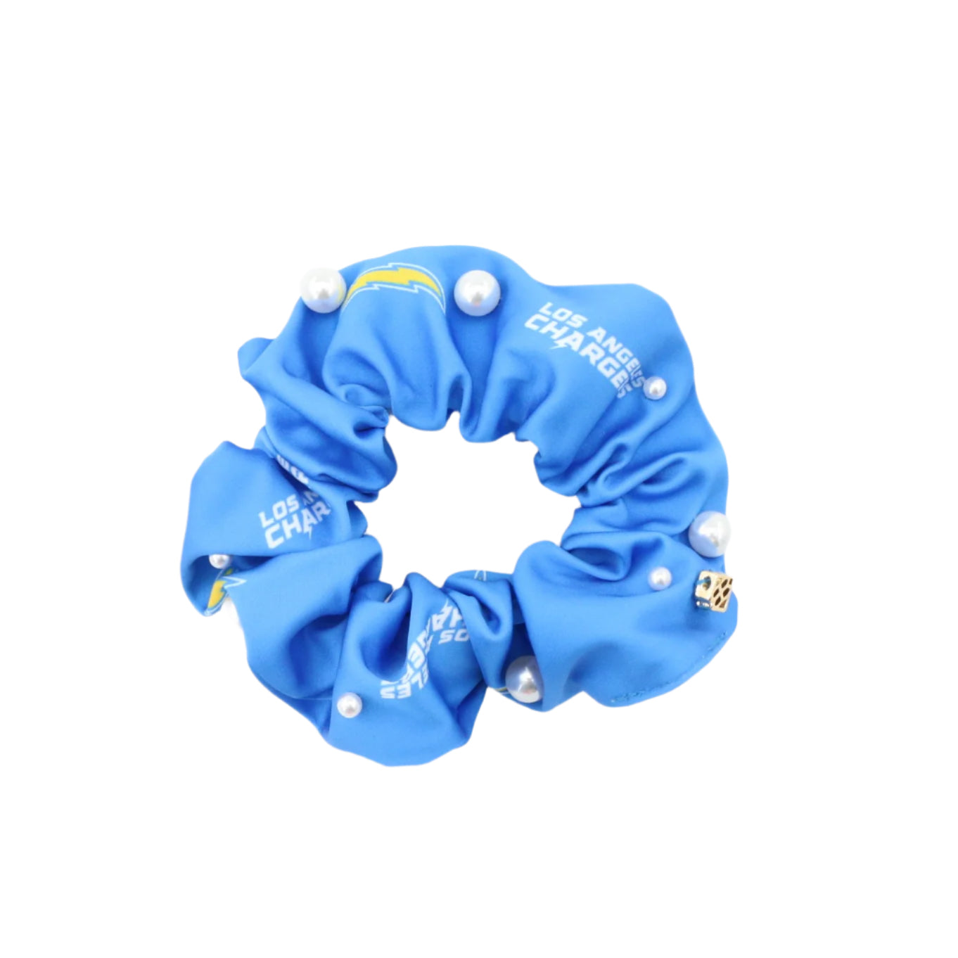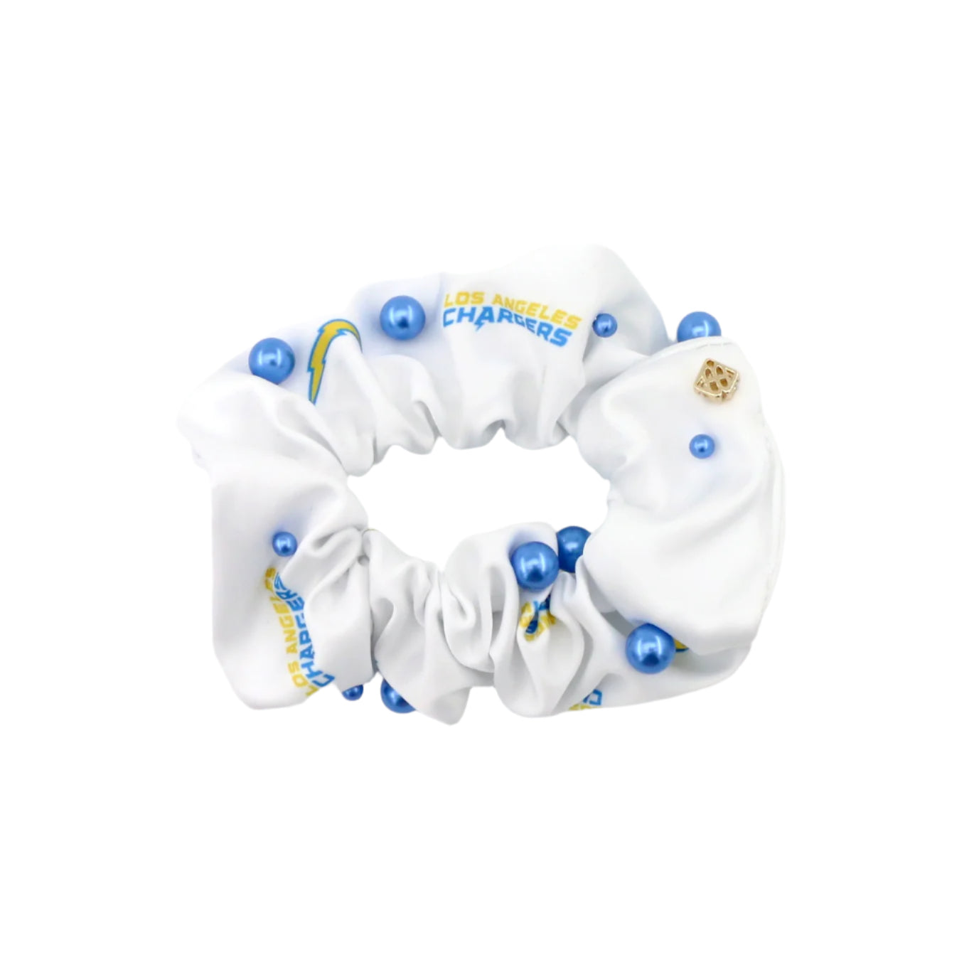 • Blue and White Los Angeles Chargers Logo Dual Scrunchie with Pearls