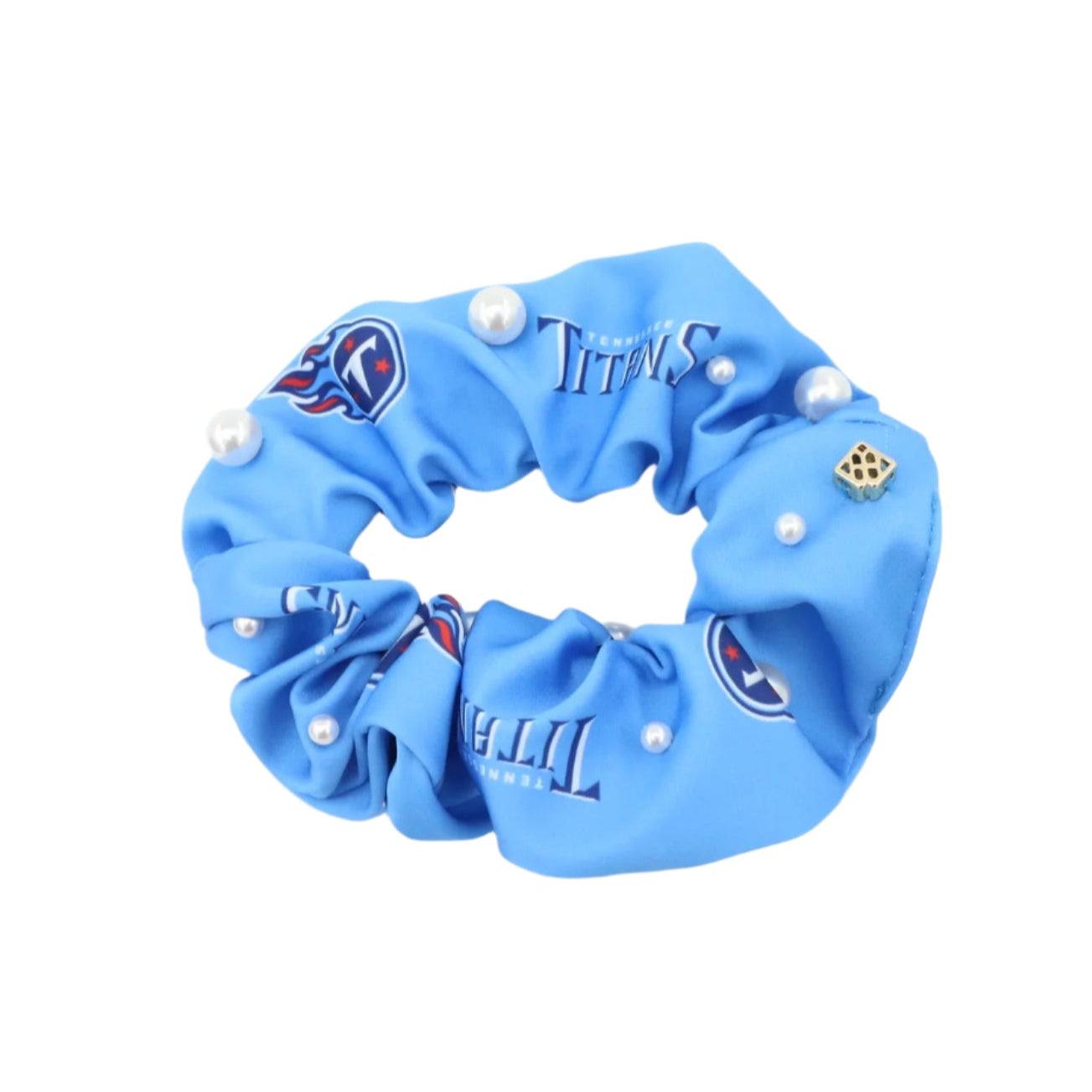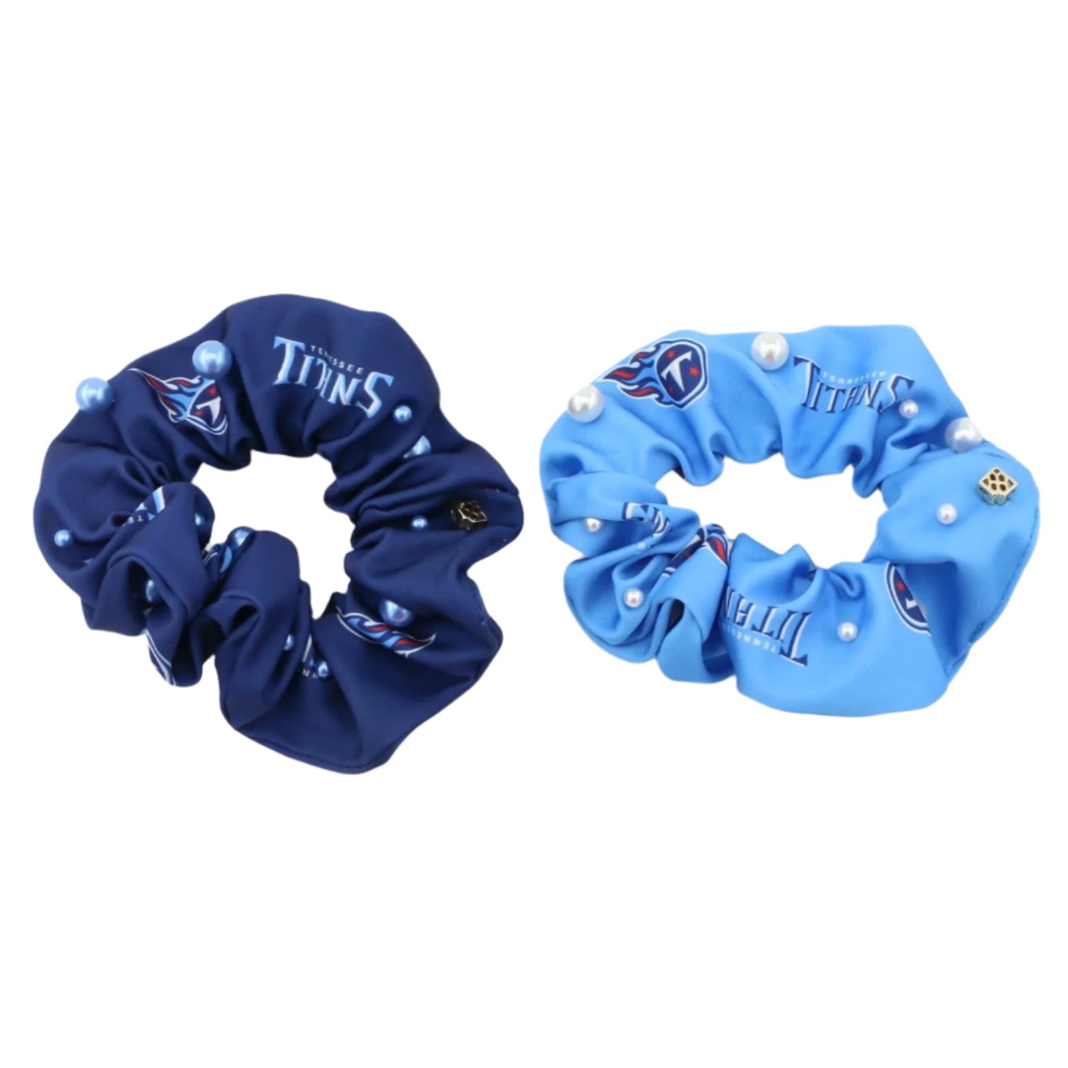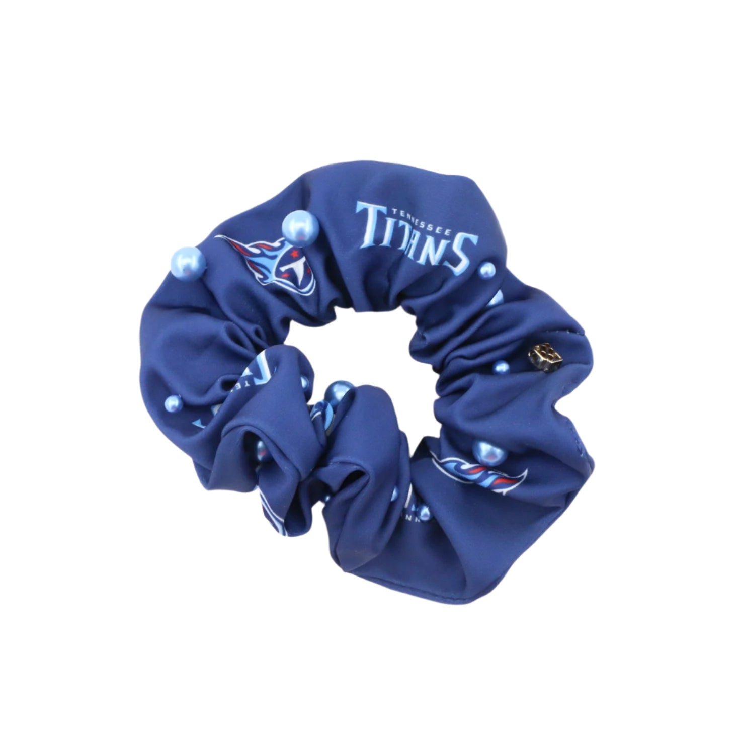 - Navy and Blue Tennessee Titans Logo Dual Scrunchie with Pearls