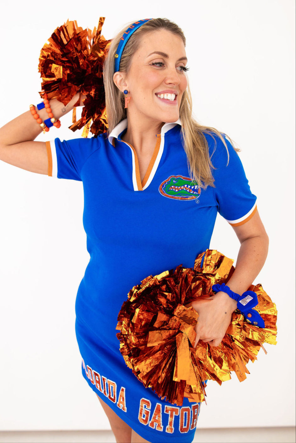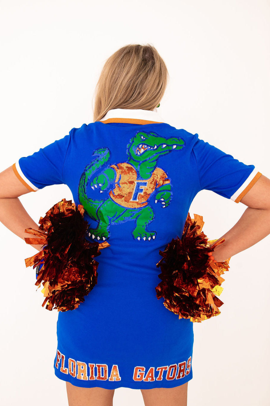 • Blue Florida BC Club Dress with embellished Gator Logo and FLORIDA GATORS on hem