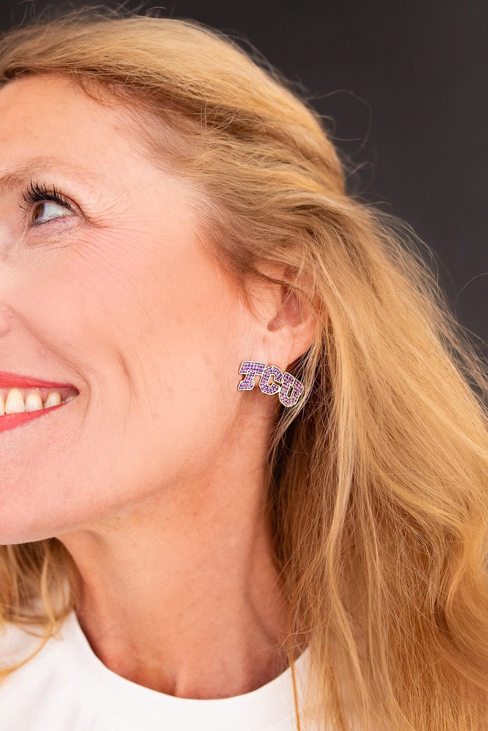 • TCU Pavé Logo Studs with Purple TCU