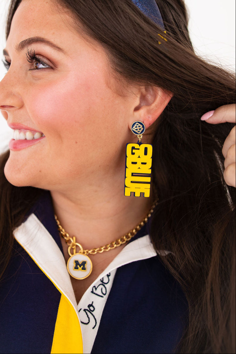 • Yellow University of Michigan GO BLUE Earrings with BC Logo Top