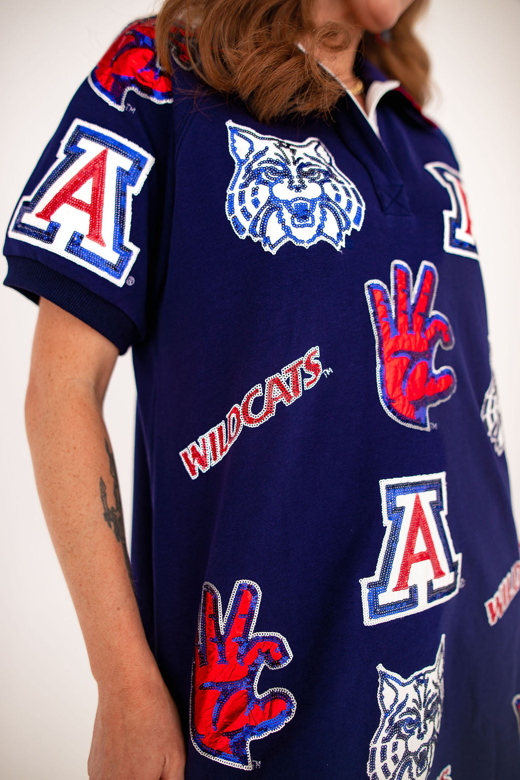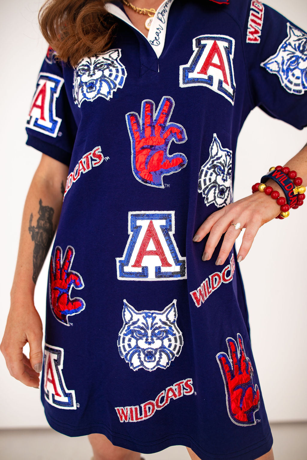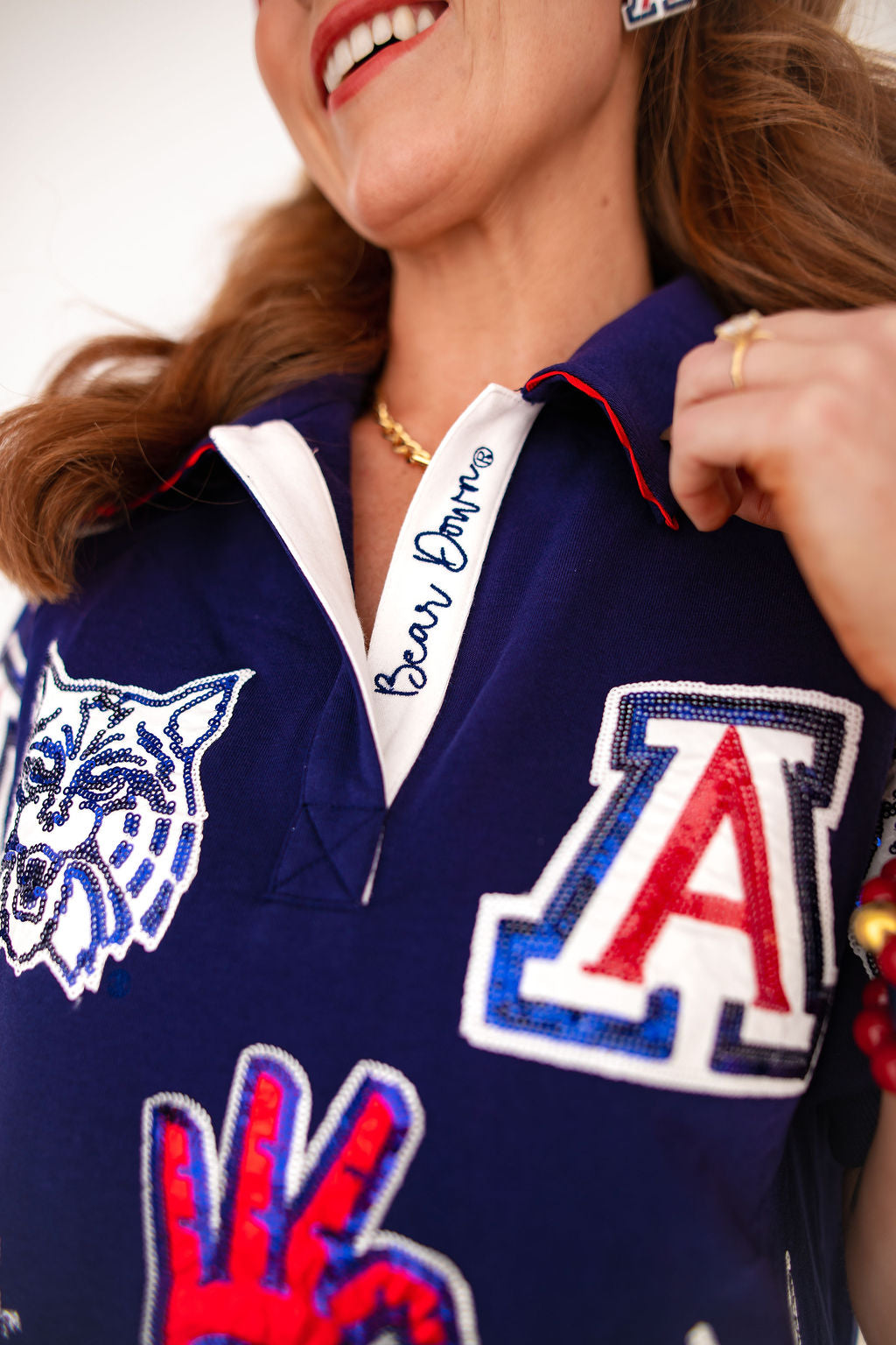 • Features sequined, fabric appliqué, and embroidered university trademarks