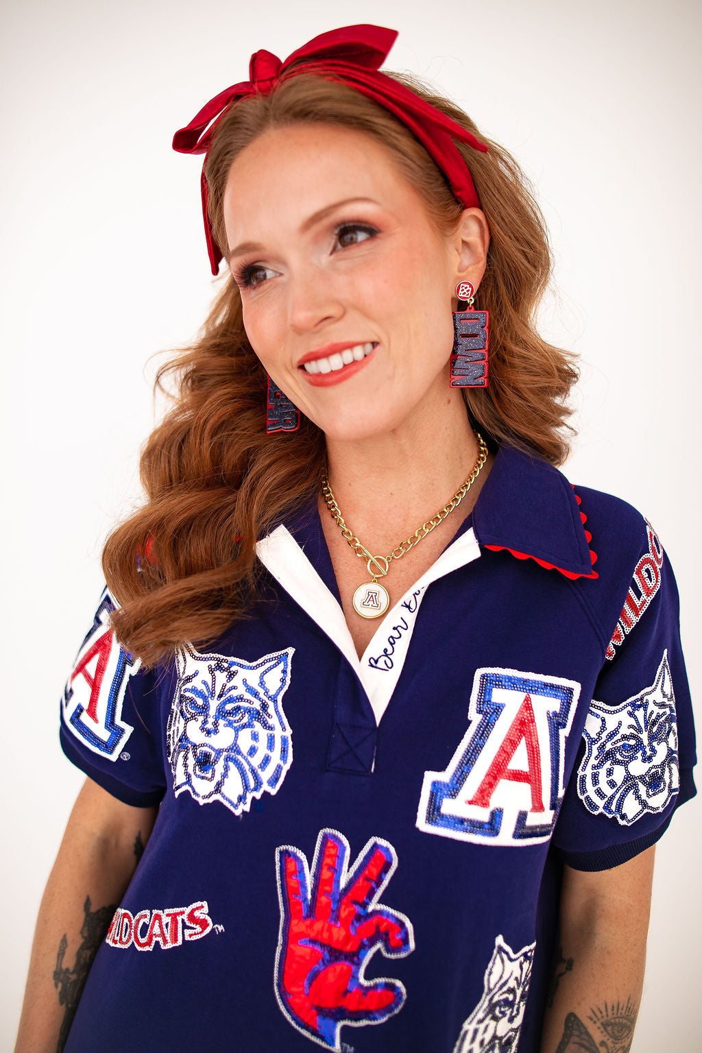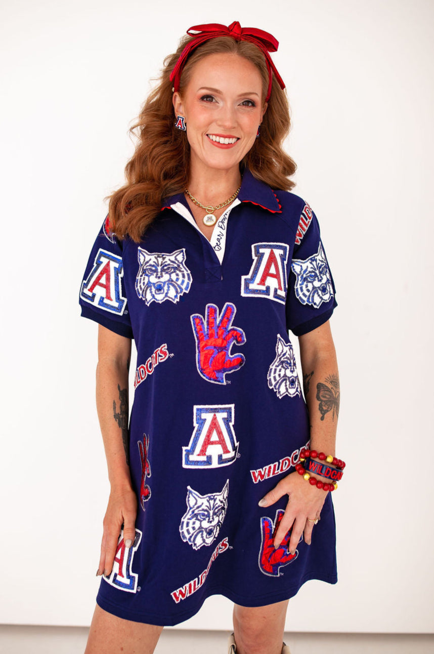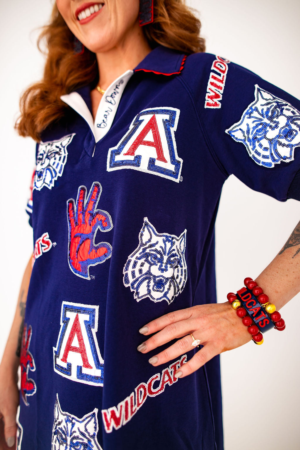 • Features sequined, fabric appliqué, and embroidered university trademarks