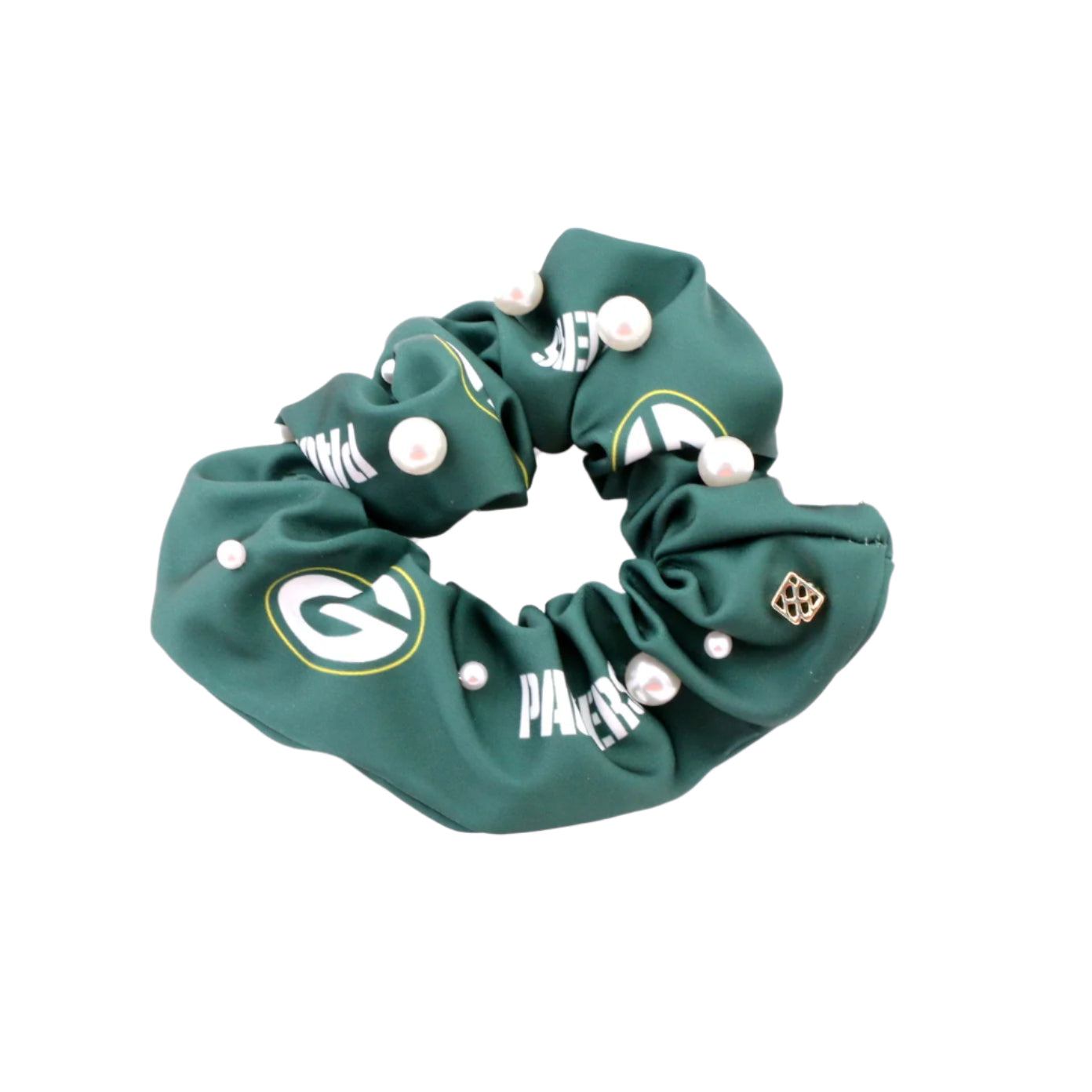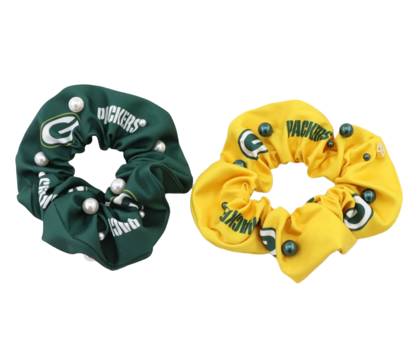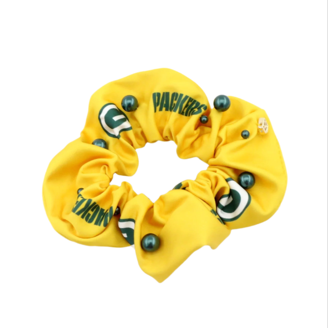 - Green and Yellow Green Bay Packers Logo Dual Scrunchie with Pearls