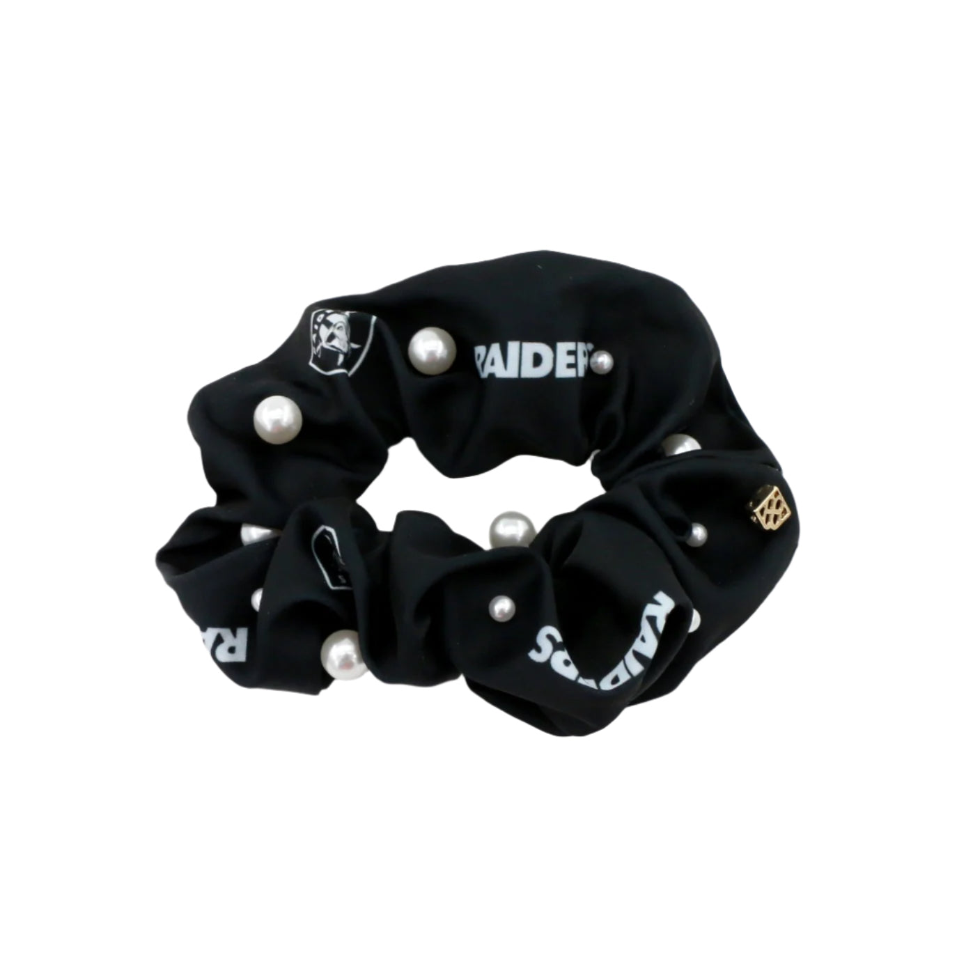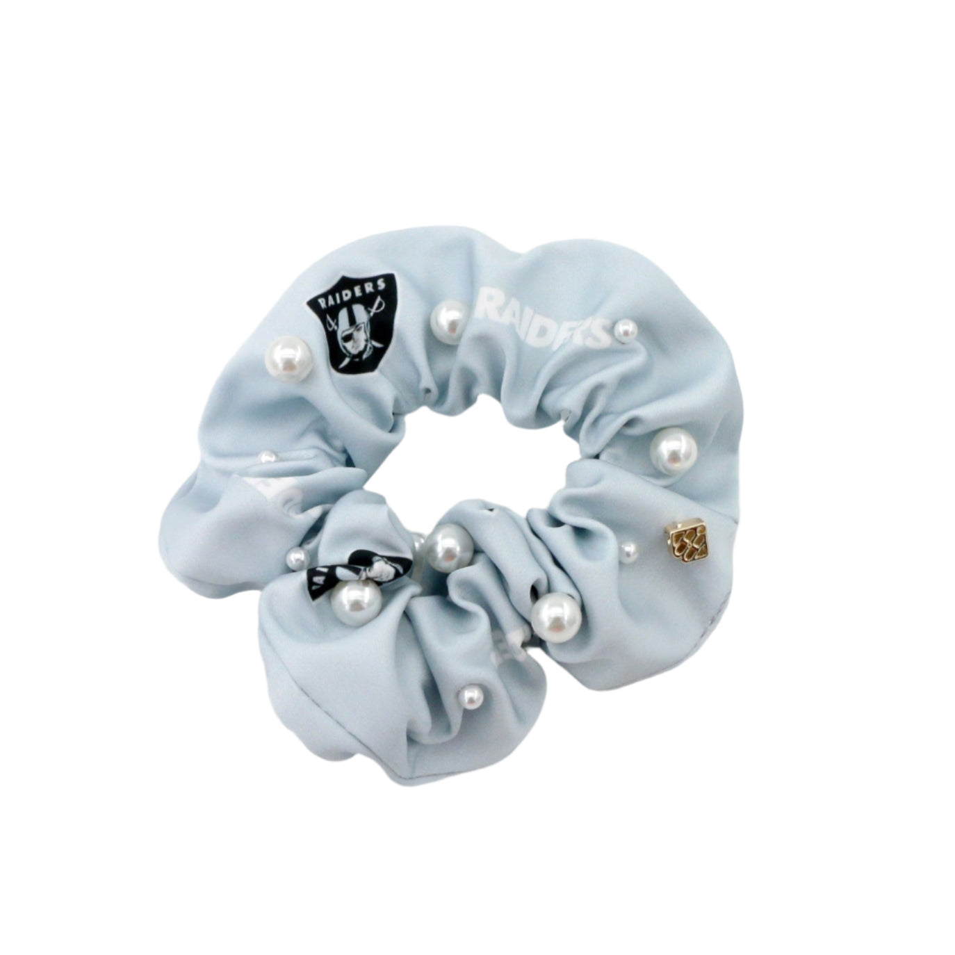• Silver and Black Las Vegas Raiders Logo Dual Scrunchie with Pearls