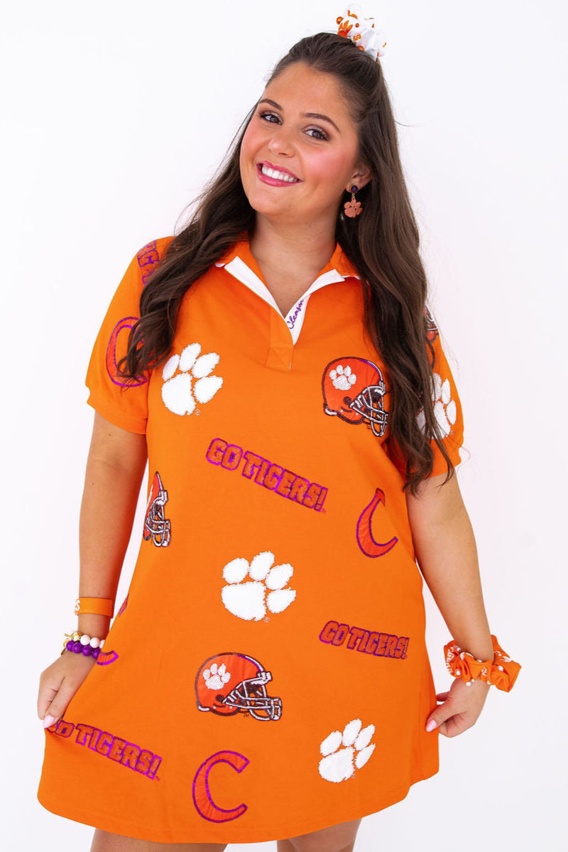 - Features sequined, fabric appliqué, and embroidered university trademarks