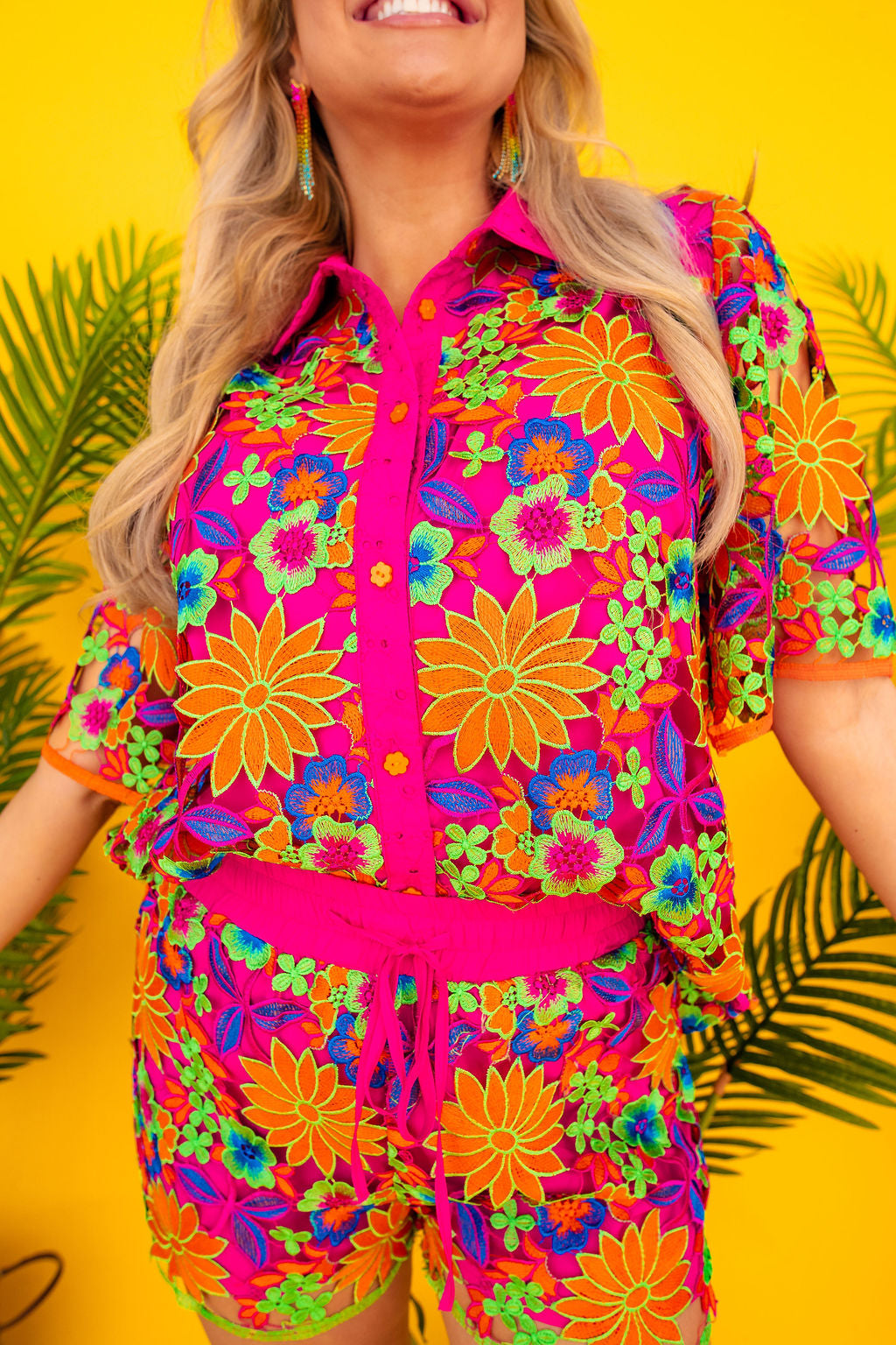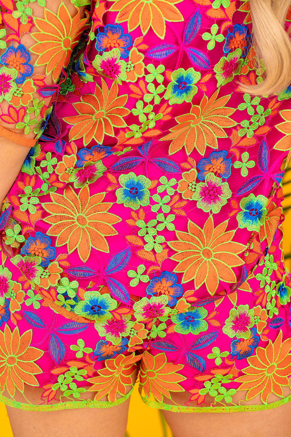• Made from luxurious embroidered lace fabric with lining, these shorts are bursting with vibrant hues and a beautiful, botanical pattern