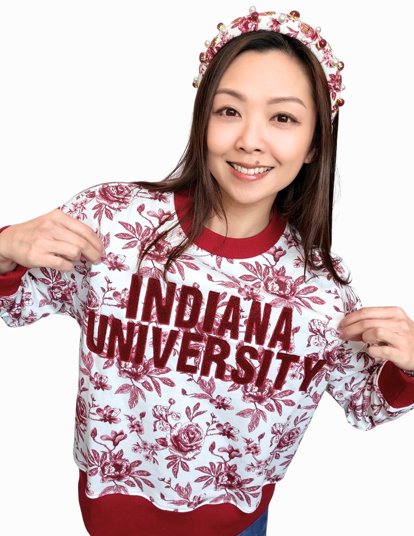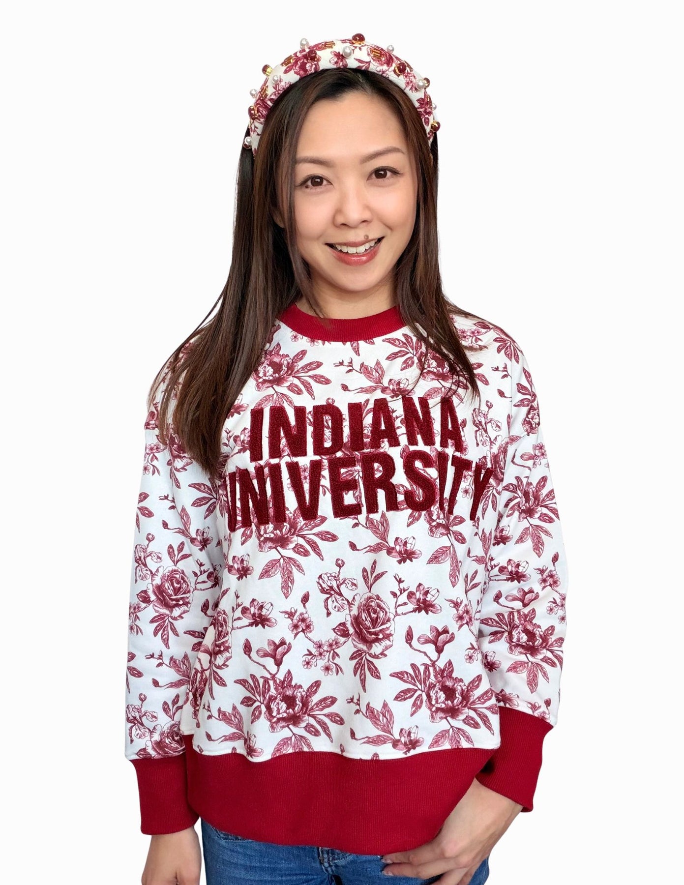 - Elevate your gameday look with this oversized cotton sweatshirt featuring feminine, floral toile motif in team colors