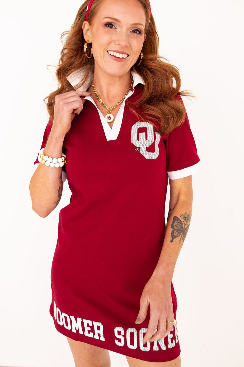 • Crimson University of Oklahoma BC Club Dress with OU and Sooner Logo
