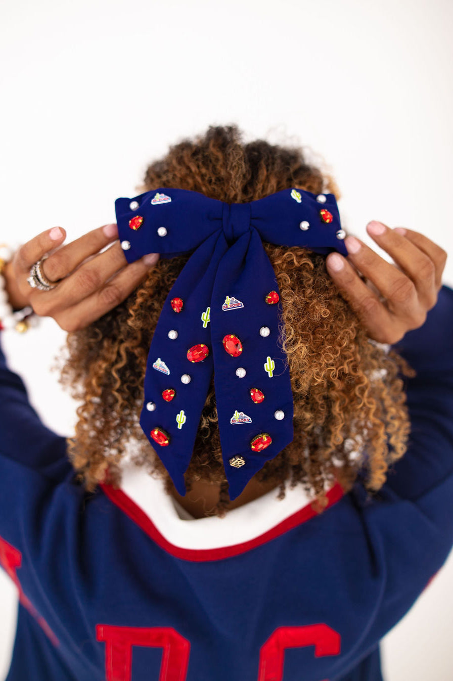 • Arizona Vintage Cactus Logo Navy Bow Barrette with Hand-Sewn Crystals and Pearls