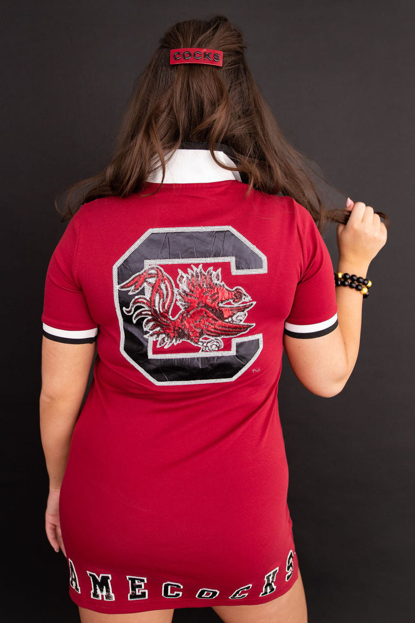 • Garnet South Carolina Club Dress with embellished South Carolina Logo & GAMECOCKS