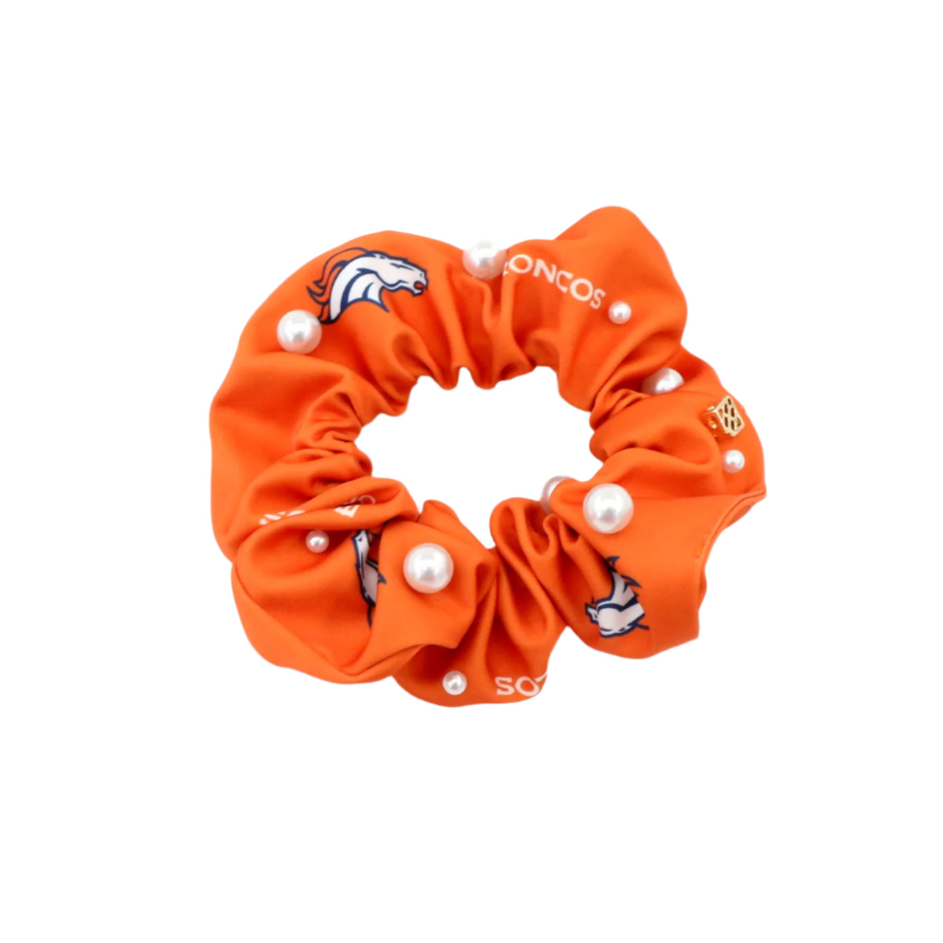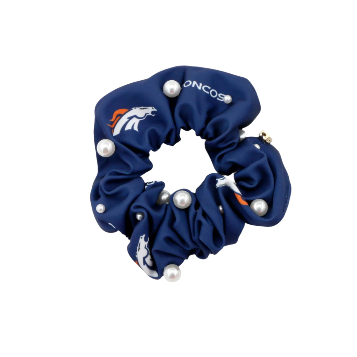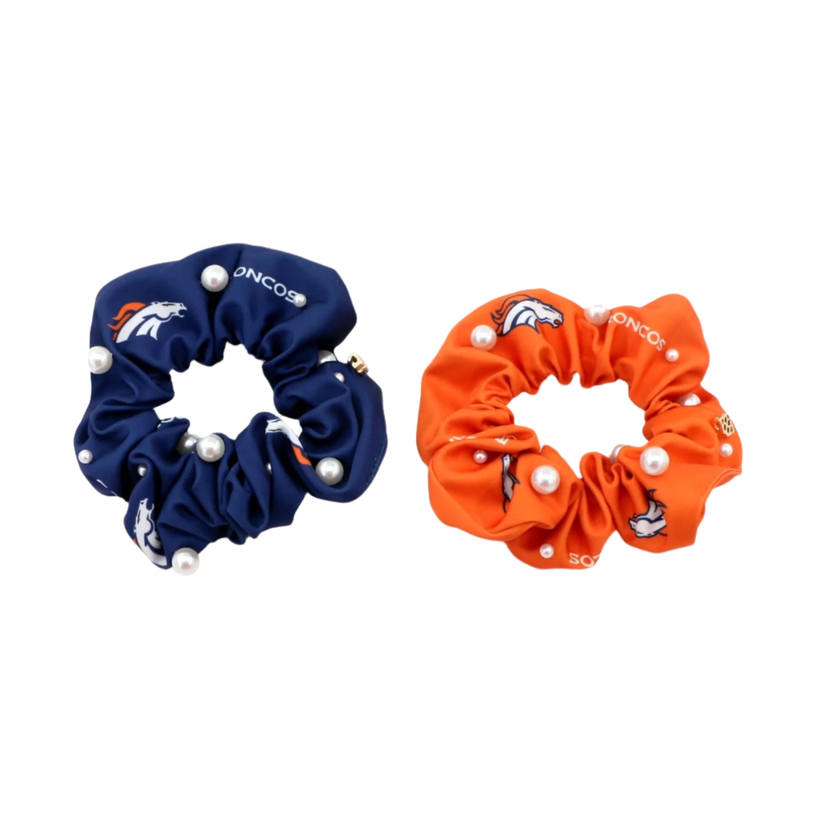 • Navy and Orange Denver Broncos Logo Dual Scrunchie with Pearls