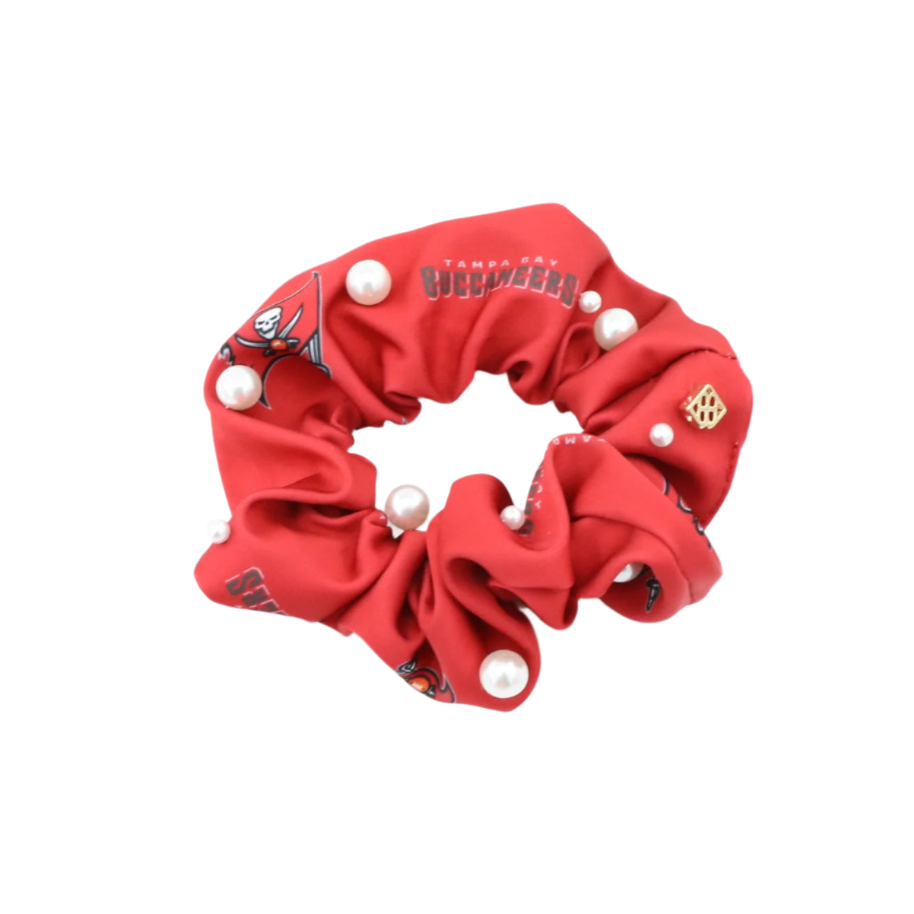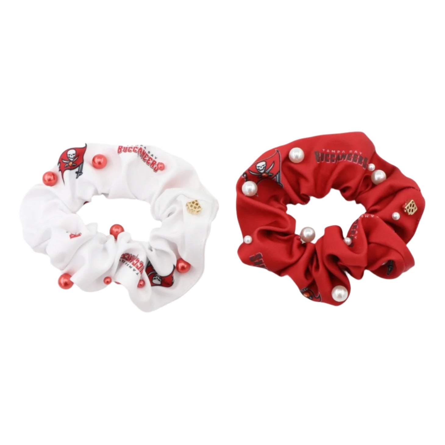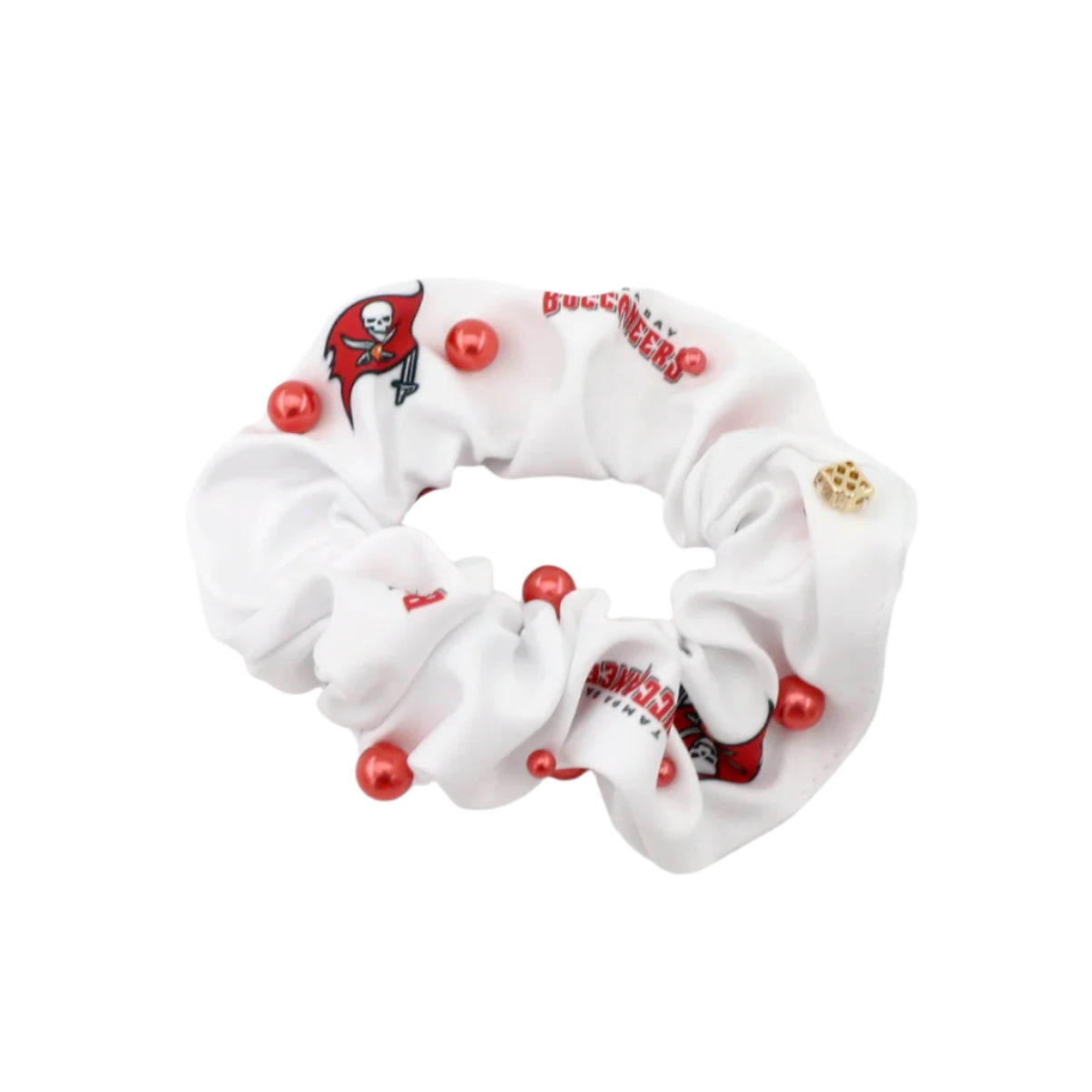 - White and Red Tampa Bay Buccaneers Logo Dual Scrunchie with Pearls