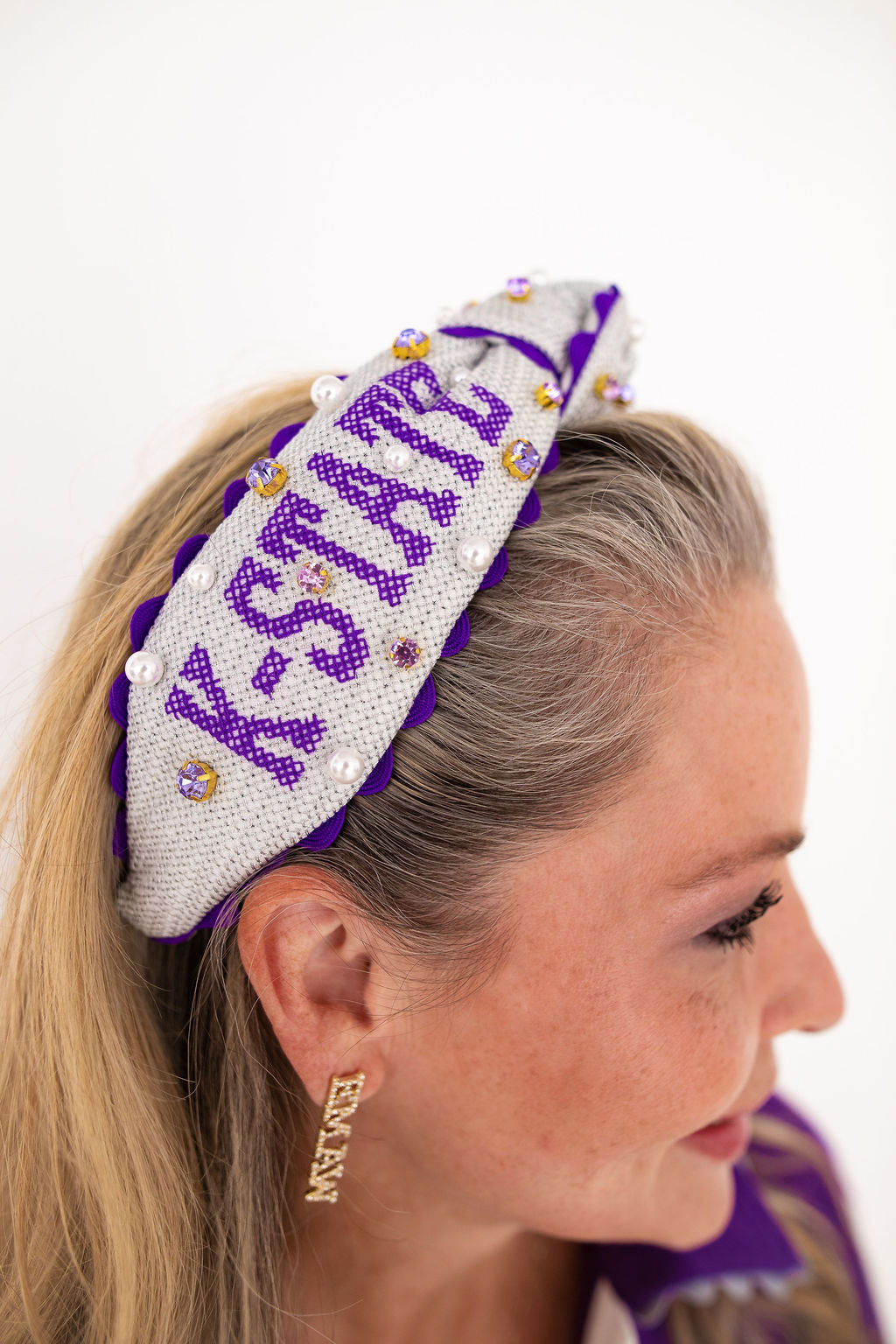 • Cross Stitch K-STATE Headband with Crystals and Pearls