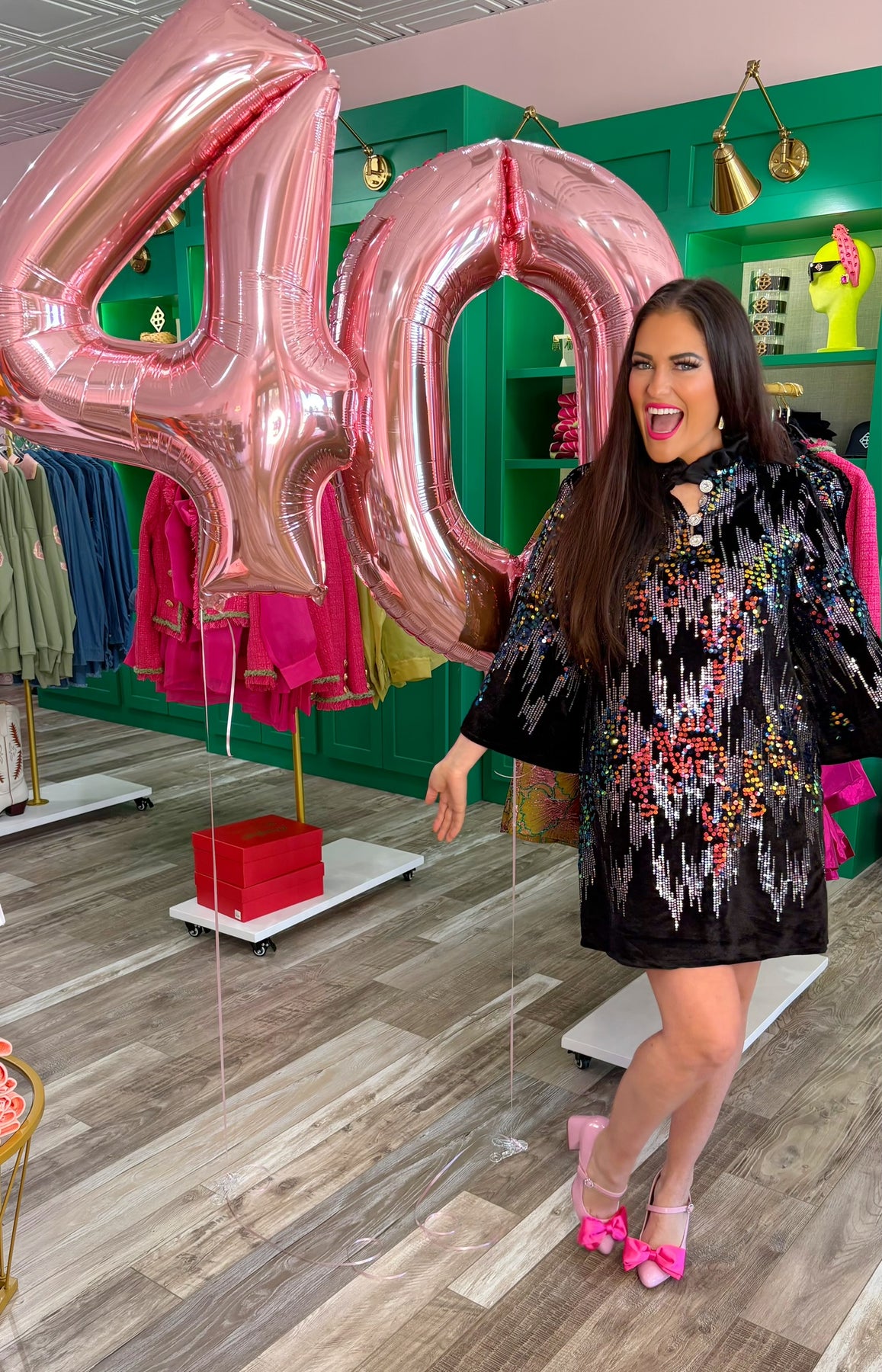OBSESSED with this dress!! It’s perfect for any time, but especially NYE, wedding guest attire, or a semi-formal event! True perfection, and you can’t skip the matching headband 🖤