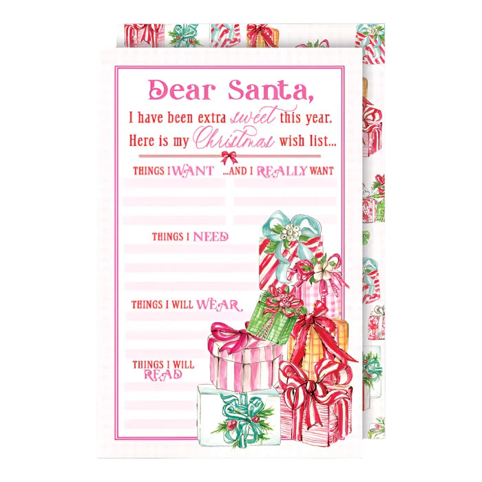 Letter to Santa With Pink Packages Glittered Card With Envelope
