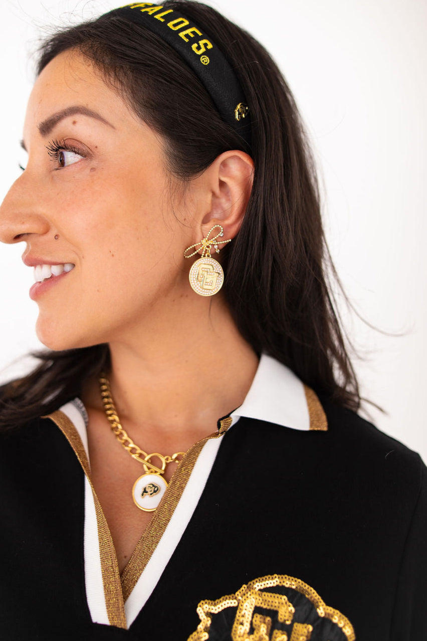 • Pearl Medallion and Gold University of Colorado Logo with Bow Top